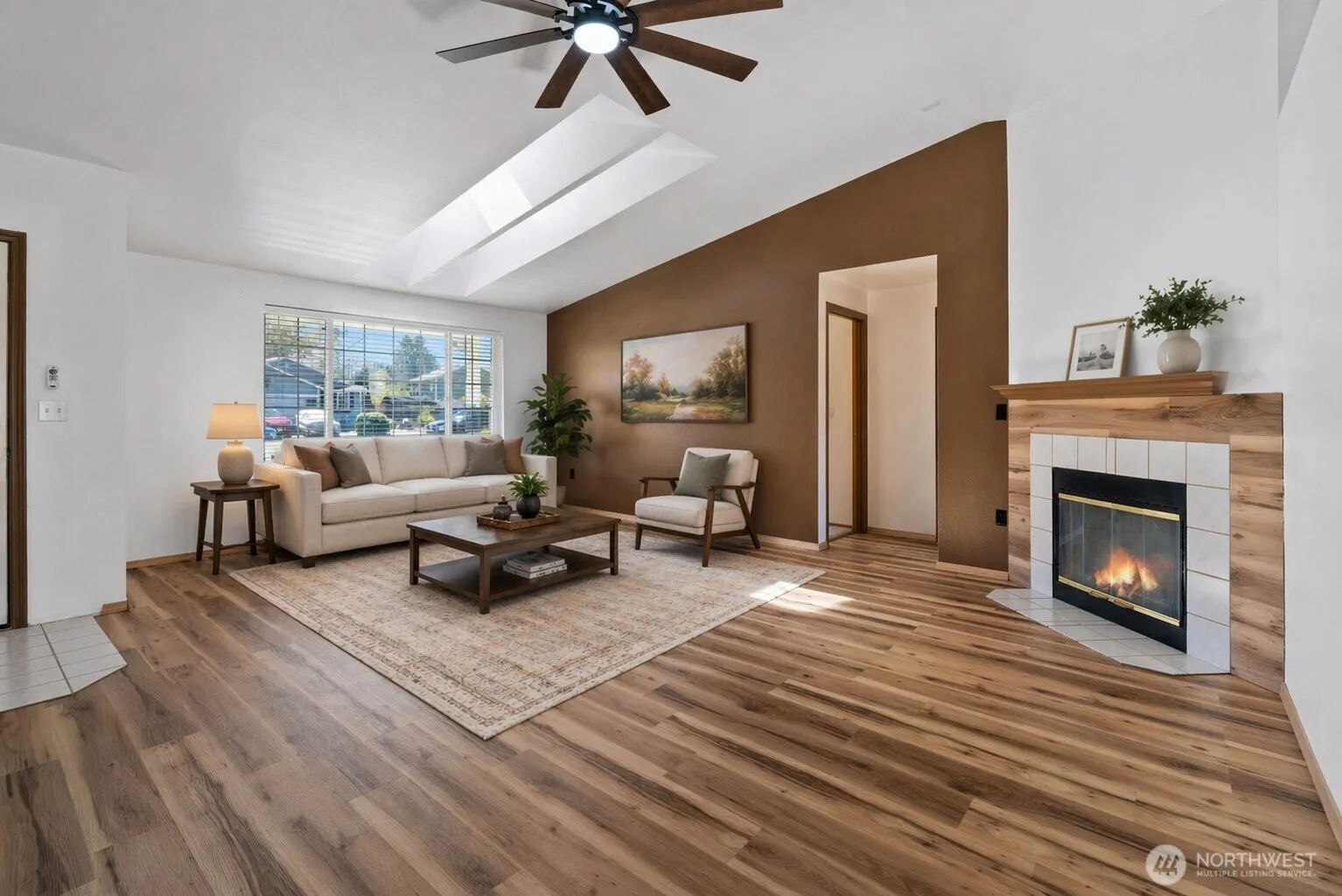 Discover this gem in Lacey! This 3-bedroom, 2-bathroom, no-step entry rambler features a light-filled open concept with vaulted ceilings and skylights. Enjoy stylish new luxury vinyl plank flooring, stainless steel appliances, and the comfort of central AC. Large primary suite with walk-in closet. The prime location is just minutes from shopping, restaurants, and local golf courses. Move-in ready and low maintenance – this is the one you’ve been waiting for!
