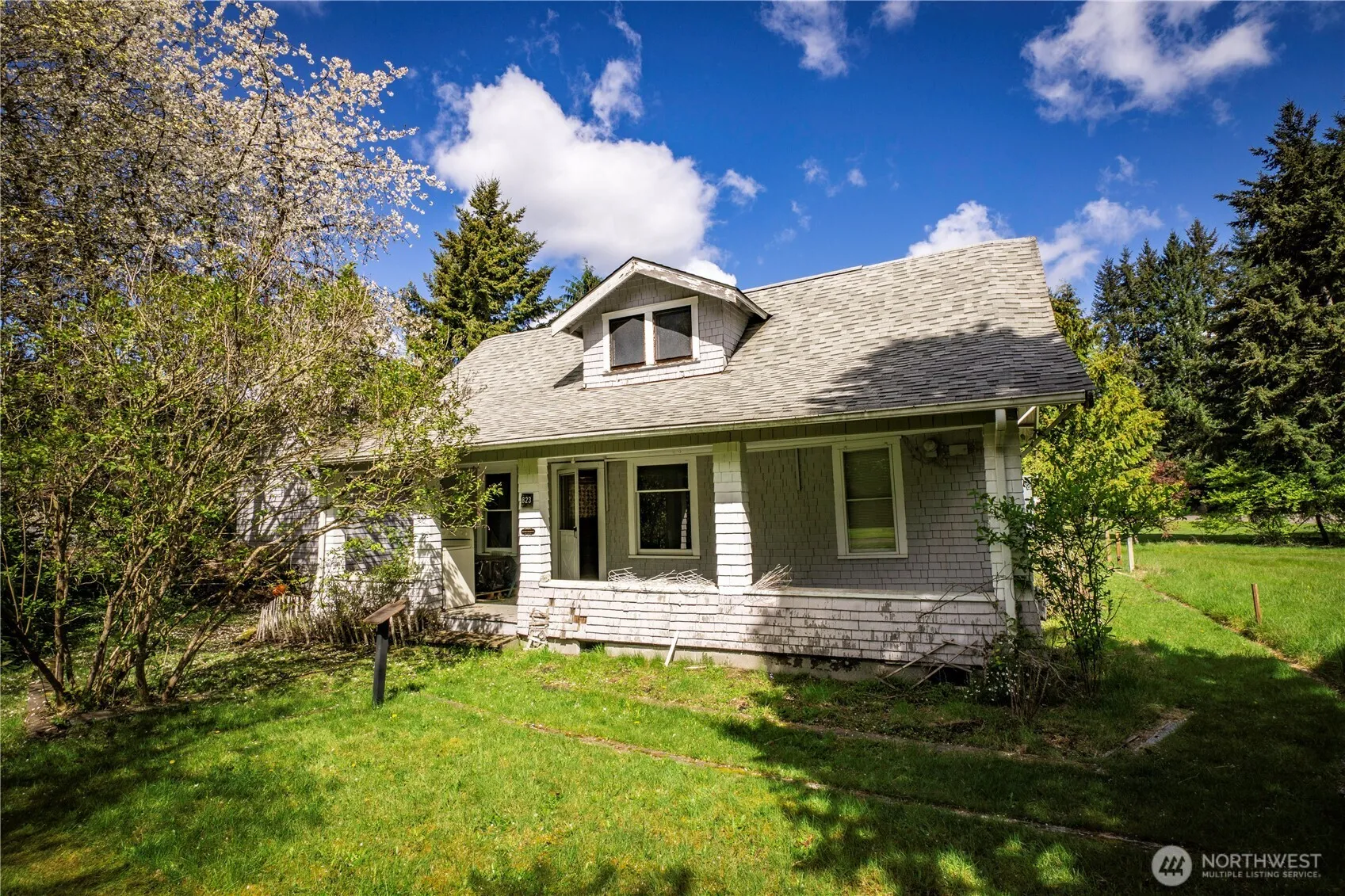 The Historic Gallagher House of Lacey! This classic home is seeking a new owner who is ready to bring their creativity and vision to this charming property. It offers 3-bedrooms, 1-bath, and a small loft area that can be used for storage or another bedroom (on .216 acre). The home offers great potential for restoration and personalization. A large, covered front porch welcomes guests and provides a comfortable space to relax. The property also includes a spacious yard, perfect for gardening enthusiasts, and features established fruit trees that add both beauty and utility to the landscape. The Gallagher House is conveniently situated near all Lacey amenities, including local coffee shops and a variety of stores and food establishments, making it an ideal location for those who value community and accessibility. This is a unique opportunity for someone with the skills and imagination to restore a historic home! Bring your tools and creativity to bring this cutie to the best potential of this special property.