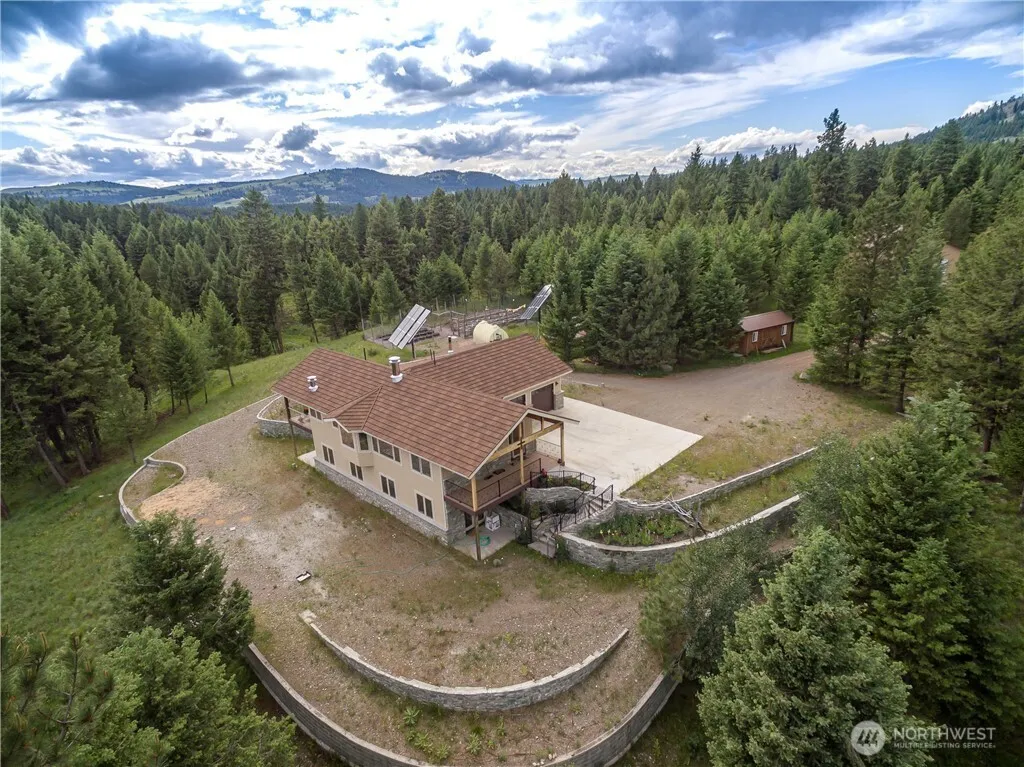 Ultimate self-sustainable living on 65+ private acres across 6 parcels. This unique, partially finished off-grid retreat combines solar and PUD power, supported by two backup generators and a 1,000-gallon propane tank. The property features a massive 40×60’ pole barn and full infrastructure including a private well and septic. Inside, find a gourmet kitchen with granite, a 4-burner gas stove/dual ovens, Italian tile, and soaring vaulted ceilings. The main-floor primary suite boasts a walk-in closet, marble shower, and granite finishes, with potential for two additional bedrooms. Premium upgrades include radiant flooring, a ventilation system, central vac, a root cellar, and RV parking with a pump-out station. Enjoy low taxes, minimal utility costs, and unmatched privacy in a stunning natural setting.