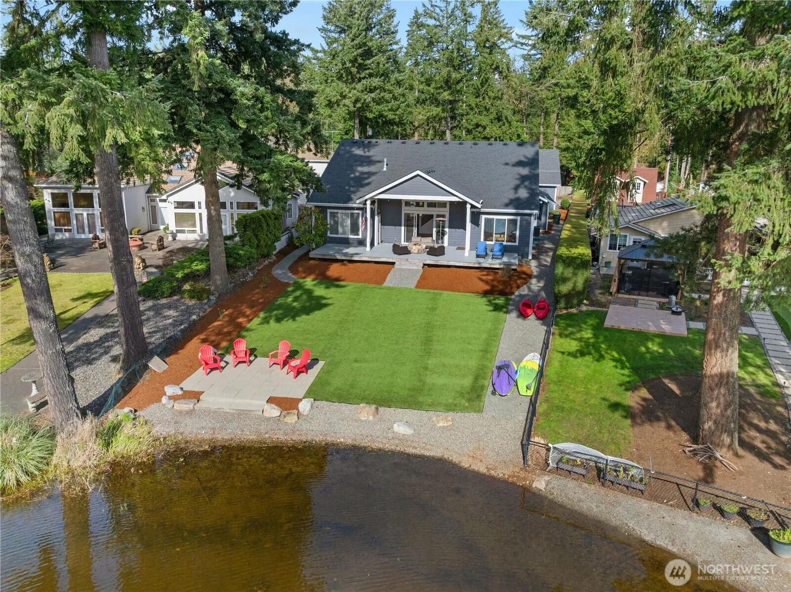 Welcome to this stunning Lake Sawyer home, where timeless design meets modern comfort. The main floor showcases beautiful white shiplap and soaring vaulted ceilings, creating a bright and inviting living space. Enjoy the convenience of a main floor primary suite, plus an additional bedroom and full bath—perfect for guests or multi-generational living. The thoughtfully designed kitchen includes both a butler’s pantry and an additional pantry for ample storage. With 5 bedrooms plus a spacious bonus room, there’s room for everyone to live, work, and play. A rare and incredibly versatile 2400sq ft shop elevates this property to a league of its own. Currently outfitted with an indoor basketball court and 2 office spaces, this expansive space offers endless possibilities—use it as a premium RV garage, a dream setup for car enthusiasts, a workshop, home gym, entertainment space, or convert it into a second dwelling unit for guests, multi-generational living, or potential rental income (buyer to verify). Nestled on Lake Sawyer, this home offers the perfect blend of style, space, and serene lakeside living.