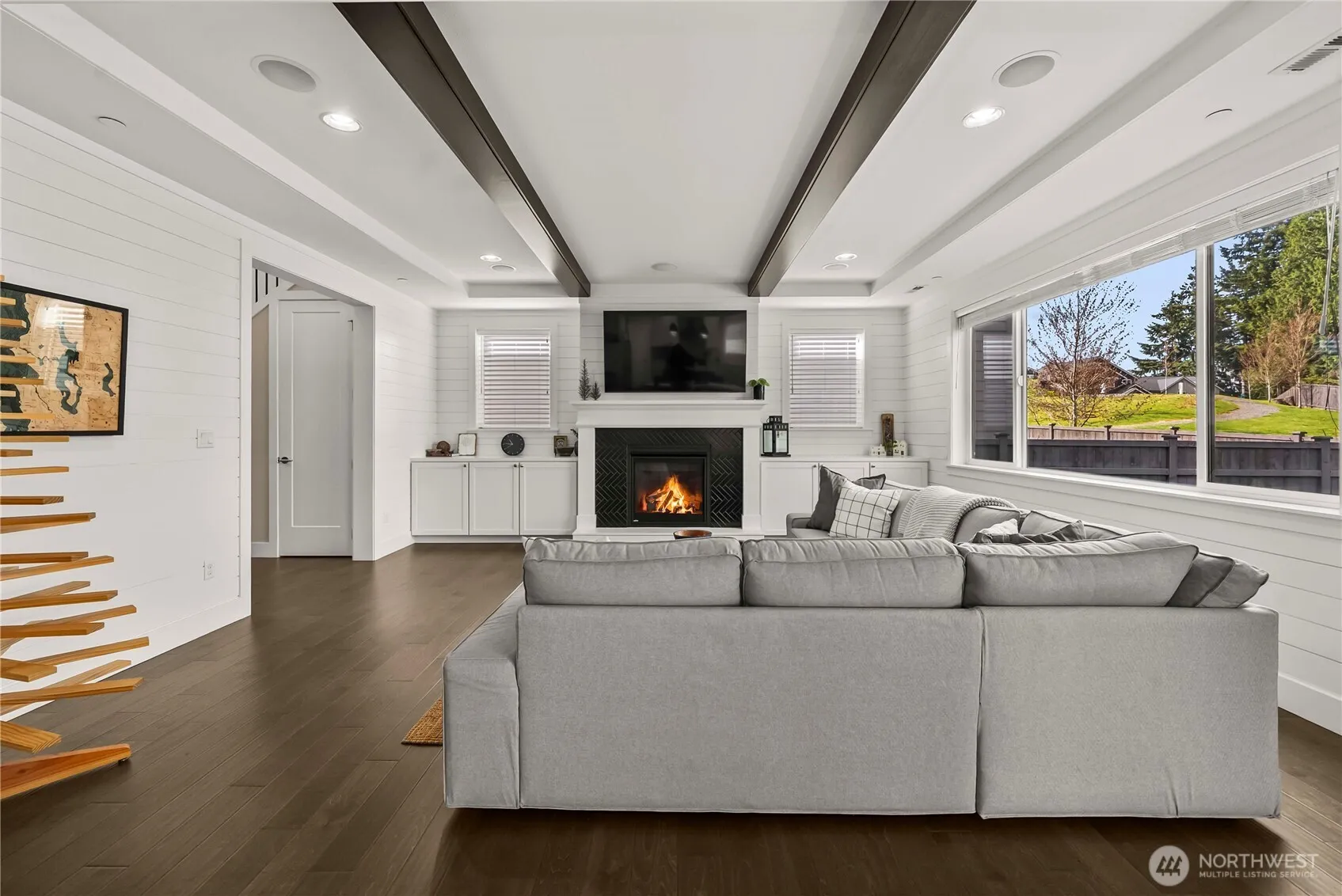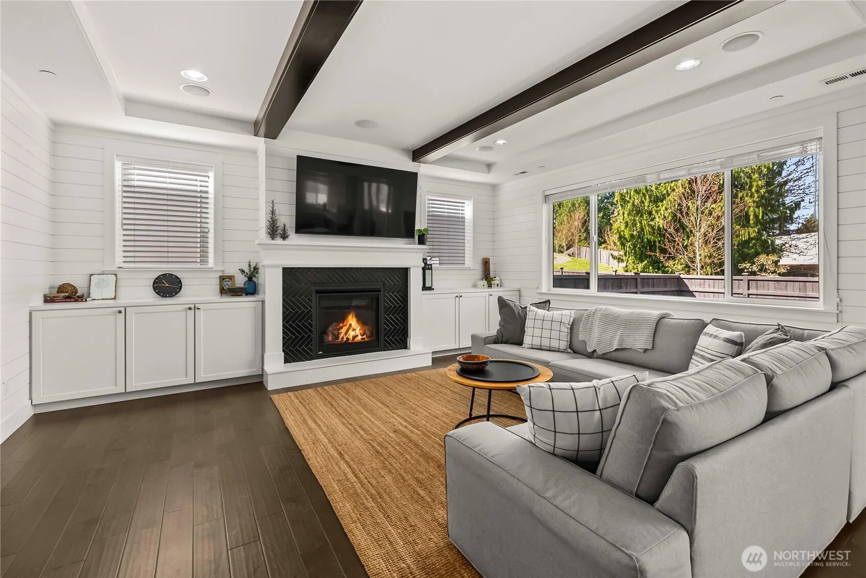 The original JK Monarch model home for Church Lake Estates. Beautifully designed two-story on a quiet cul-de-sac with over 2,800 sq ft of thoughtfully curated living space. A grand foyer with soaring ceilings and statement chandelier welcomes you inside. The main level features a private guest suite with en-suite shower, separated by a reclaimed wood sliding barn door, ideal for multi-generational living. The open great room is anchored by a striking gas fireplace with tile surround and custom mantle. The chef-inspired kitchen showcases an oversized quartz island, dual Frigidaire Professional column refrigerator and freezer, marble countertops and accents, upgraded appliances, and extensive cabinetry. Rich hardwood flooring, upgraded millwork, shiplap accents, and built-ins throughout add warmth and sophistication. Upstairs, the luxurious primary suite offers two walk-in closets and a spa-inspired five-piece marble bath. Covered deck with outdoor gas fireplace and integrated indoor/outdoor sound system create the perfect year-round retreat. Additional features include fire suppression sprinklers, central AC, security cameras, in-ground irrigation, glass sliders at the media room, exposed aggregate driveway, and a three-car garage. Near parks, trails, and top-rated schools