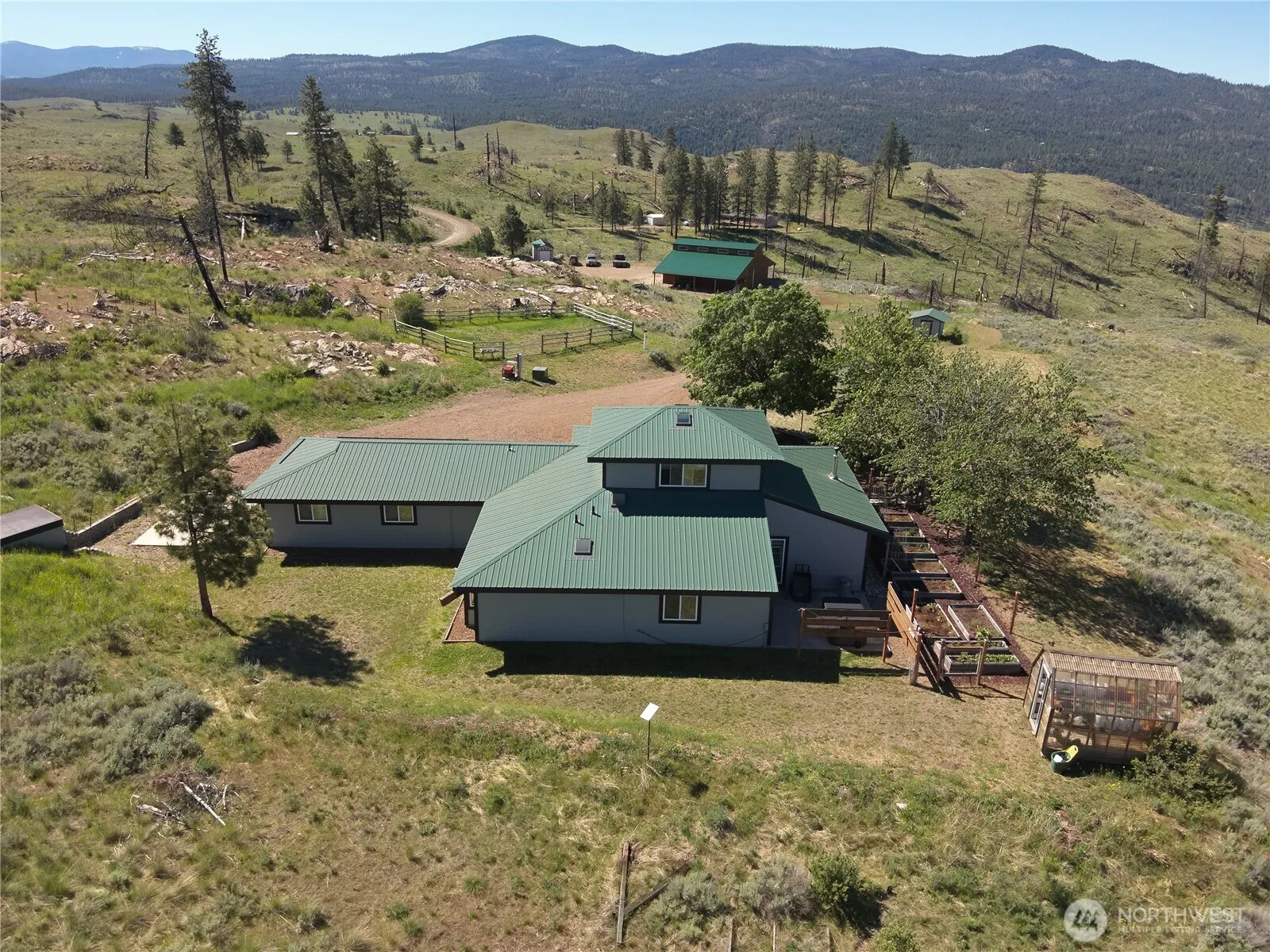 At the end of a country road lies your own personal Nirvana—20 private acres of peace, bordering 480+ acres of state lands, adding extra privacy, and breathtaking panoramic views. This custom-built, fully furnished 3-bed, 1.75-bath home features energy-efficient SIP construction designed to withstand the rugged terrain while providing year-round comfort. Vaulted ceilings, multiple skylights, and an open floor plan fill the home with natural light, while radiant heated tile floors and three heat sources keep you warm in every season. Beautiful maple cabinetry, built-in dining area, formal dining room, and a hidden stairway leading to the “Eagle’s Nest” office add charm and function. Move-in ready and thoughtfully equipped. Outside, enjoy a 2-car garage, a large Methow-style barn/shop with power and water, multiple outbuildings, a greenhouse, an electrified garden, and fenced areas ready for livestock. Three acres are fenced with corrals, and the property is fenced on three sides, bordering state land to the north for added privacy. Grow your own vegetables, raise animals, work remotely with Starlink, then relax in the hot tub beneath a sky full of stars—where wildlife roams, and even the Northern Lights may appear.