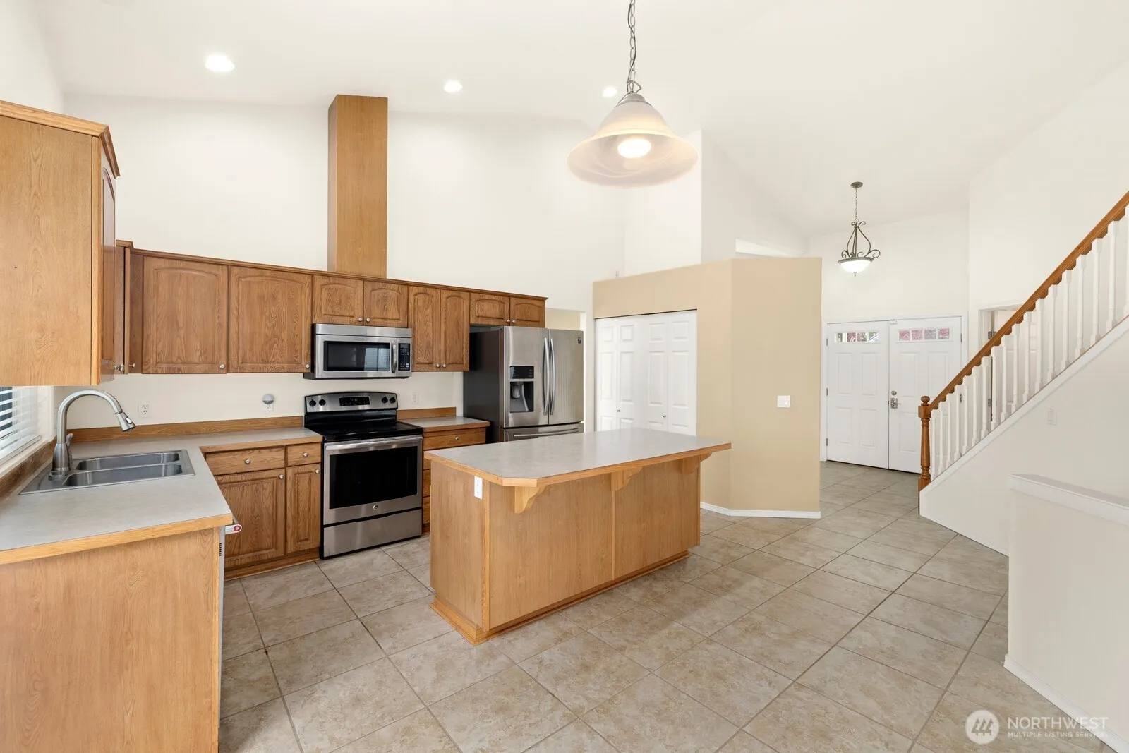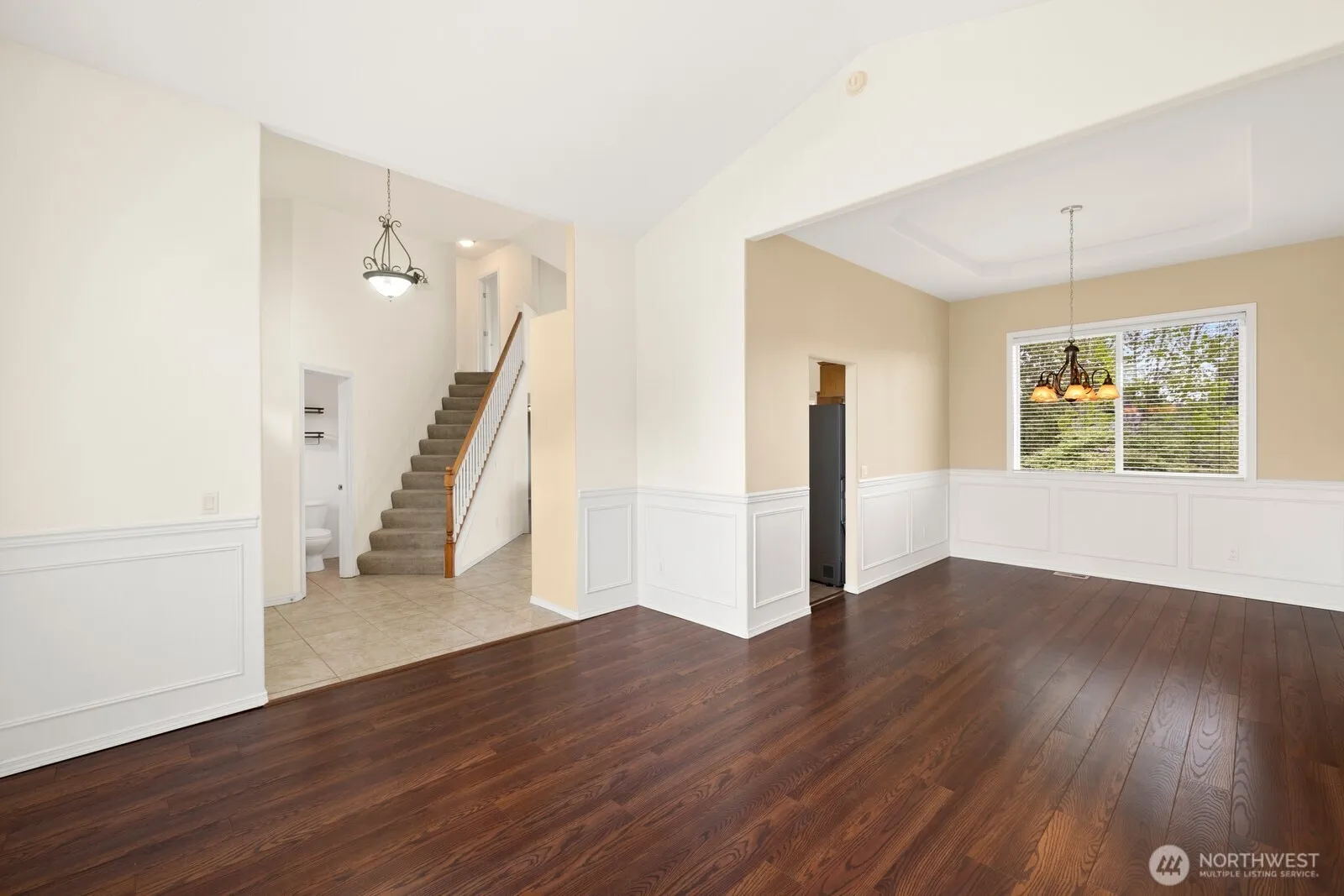 Almost 2200 sq. ft. 4 bedroom 2.5 bath tri-level! Vaulted ceilings thought out main level with a spacious living and dining room with lots of natural light. The kitchen has an eating bar and nook that overlooks the family room with a cozy gas fireplace. Spacious Primary bedroom with 5 piece bath and walk-in closet. 2 additional bedrooms up, both with walk-in closets. The 4th bedroom is on the lower level and makes for a great guest room or office. Heat pump for efficient heating and for summer cooling. Built in vacuum system. The deck leads to private backyard that backs to greenbelt for added privacy. Extra long driveway can accommodate 6 cars. Cul de Sac and White River schools. Close to Lakes, shopping & all amenities Bonney Lake has to offer.