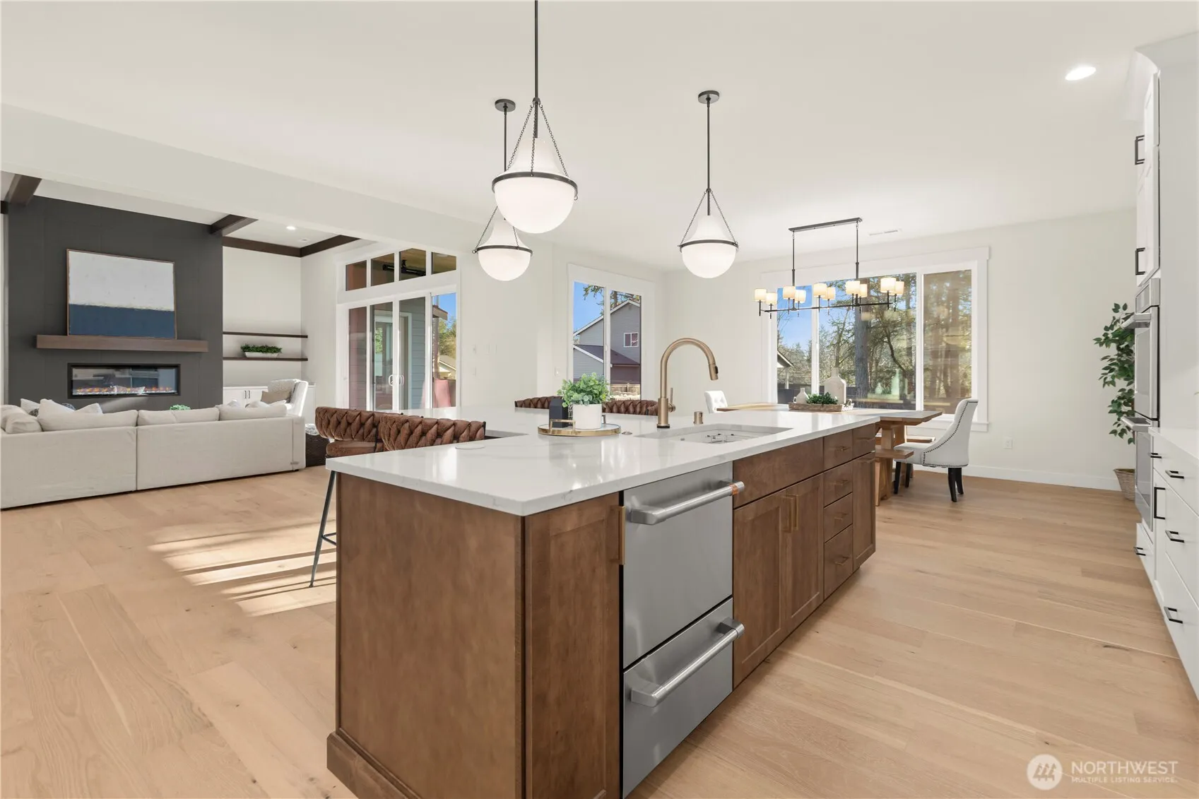 Experience Pacific Northwest living at its finest in this newly released luxury community by JK Monarch – a Trumark Company. This stunning 3,006 sq ft rambler showcases breathtaking Mt. Rainier views & true one-level living, featuring 4 bedrooms, 2.75 baths, a dedicated office/flex space, prep kitchen & covered outdoor living with a stone-surround gas fireplace—perfect for year-round enjoyment. Rare 3-car + 2-car detached garage offers exceptional flexibility for storage, hobbies, or additional parking. Inside, enjoy designer-selected finishes throughout, including wide-plank flooring, quartz slab countertops, full-height tile backsplash, and soft-close shaker cabinetry. The chef’s kitchen is equipped with KitchenAid appliances, a gas cooktop, wall oven/microwave combo, and an oversized island ideal for entertaining. The luxurious primary suite features french door entry, coffered ceilings, and a spa-inspired bath with freestanding soaking tub, tile shower, dual sinks, and a spacious walk-in closet. Additional highlights include 8’ interior doors, painted millwork, heat pump with A/C, EV charging (240V/50AMP), and fully fenced w/ professional landscaping. Located in Tehaleh, enjoy access to 1,800 acres of open space, 40+ miles of trails, 14 parks, and stunning Mt. Rainier views—all just minutes from everyday amenities. Personalize your finishes with this presale opportunity. Photos for illustration only. Finishes may vary. Estimated completion: November 2026.