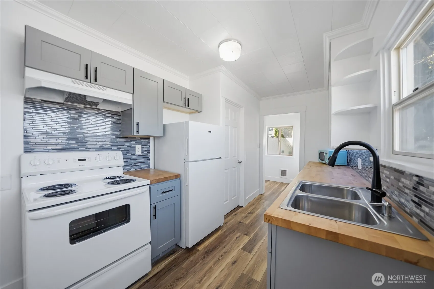[CHARMING + CLASSIC] 1930s home in the heart of historic downtown Stanwood, full of character and timeless appeal. Set on a quaint corner lot, the property features fruit trees along with mature flowering trees and shrubs, plus off-street parking and a shed with loft for extra storage or creative use. Inside, you’ll find 710 sq ft of inviting living space with thoughtful details throughout, including built-ins, crown molding, and other charming features. The gallery kitchen offers butcher block countertops and a cozy corner eat-in area, with an additional flex space – perfect for a small office or reading nook. The bedroom includes a walk-in closet and convenient access to a two-door adjacent full bathroom. A spacious laundry/mud room adds functionality and space. Home is wired for electric vehicle charger! Located just moments from schools, shops, dining, transit, and easy I-5 access, this home blends historic charm with everyday convenience. WELCOME HOME!