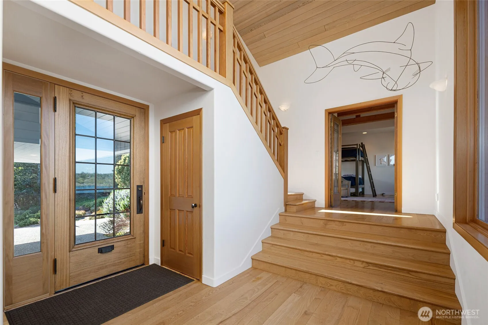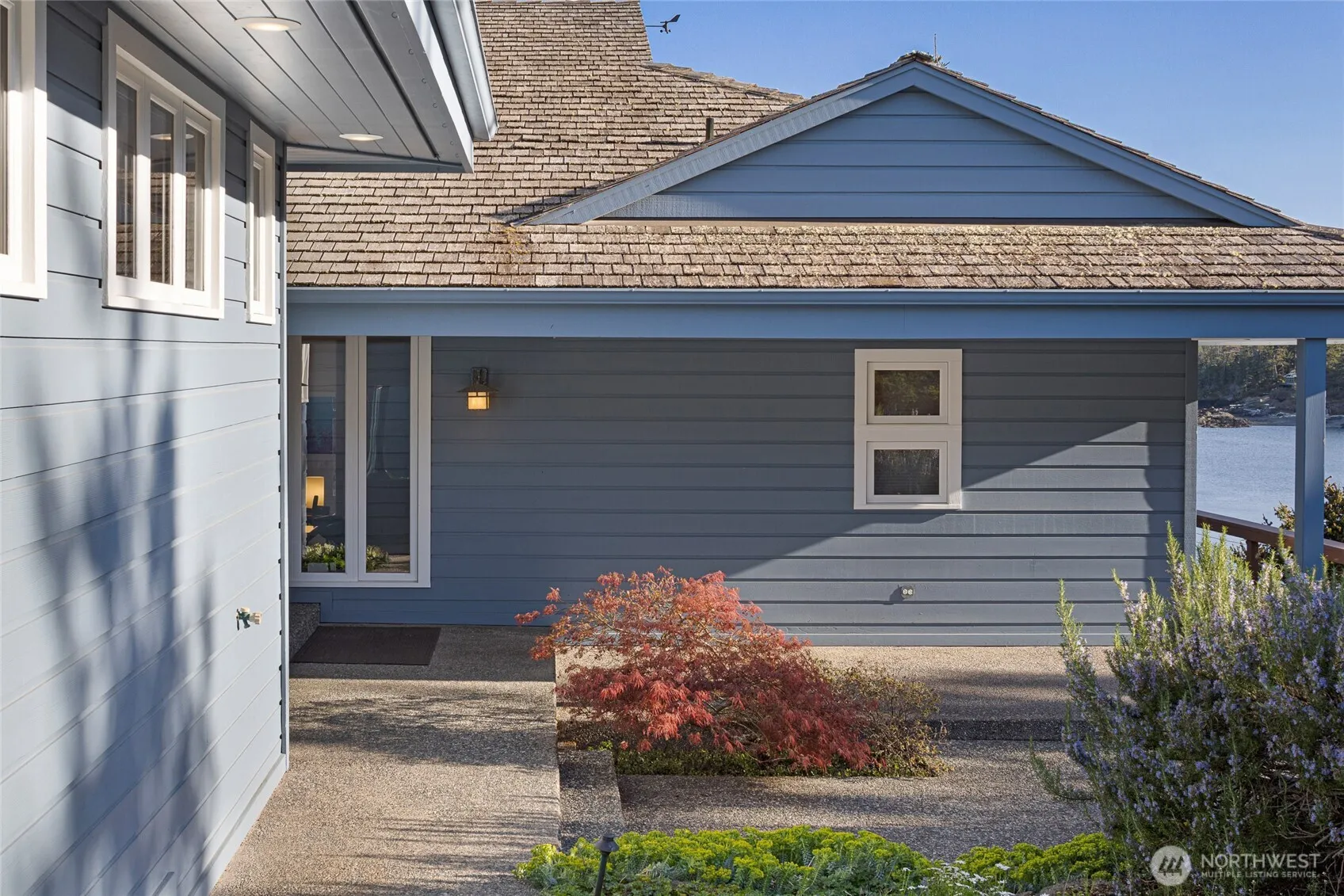 Perched on a rare and private point of San Juan Island, this architecturally significant waterfront estate offers an exceptional blend of design, scale, and lifestyle. Encompassing 3 parcels and 640± feet of shoreline, the property captures sweeping waterviews framed by Mt. Baker, with walls of glass that bring the ever-changing seascape into every living space and a setting surrounded by water on three sides. The 4,120± sf main home is thoughtfully designed with a refined yet livable layout, offering 3 bed/4 baths and multiple flex spaces for office, media, or guest use. The primary suite is a serene retreat, evoking the feeling of being on a boat with expansive waterviews, a walk-in closet, and spa-inspired 5-piece bath. Medium bank waterfront with accessible shoreline invites paddleboarding and kayaking, while low tide reveals a beach ideal for exploring, with crabs under rocks and a hidden cave. A permitted mooring buoy accommodates up to a 45′ boat. Includes an additional waterfront lot for future development or privacy. A detached 3-car garage is complemented by an 864± sf ADU studio, ideal for guests or income potential. Walking distance to the San Juan Golf & CC and a short bike ride to town, with a compliant vacation rental permit for added flexibility and investment appeal. A truly rare waterfront legacy property!