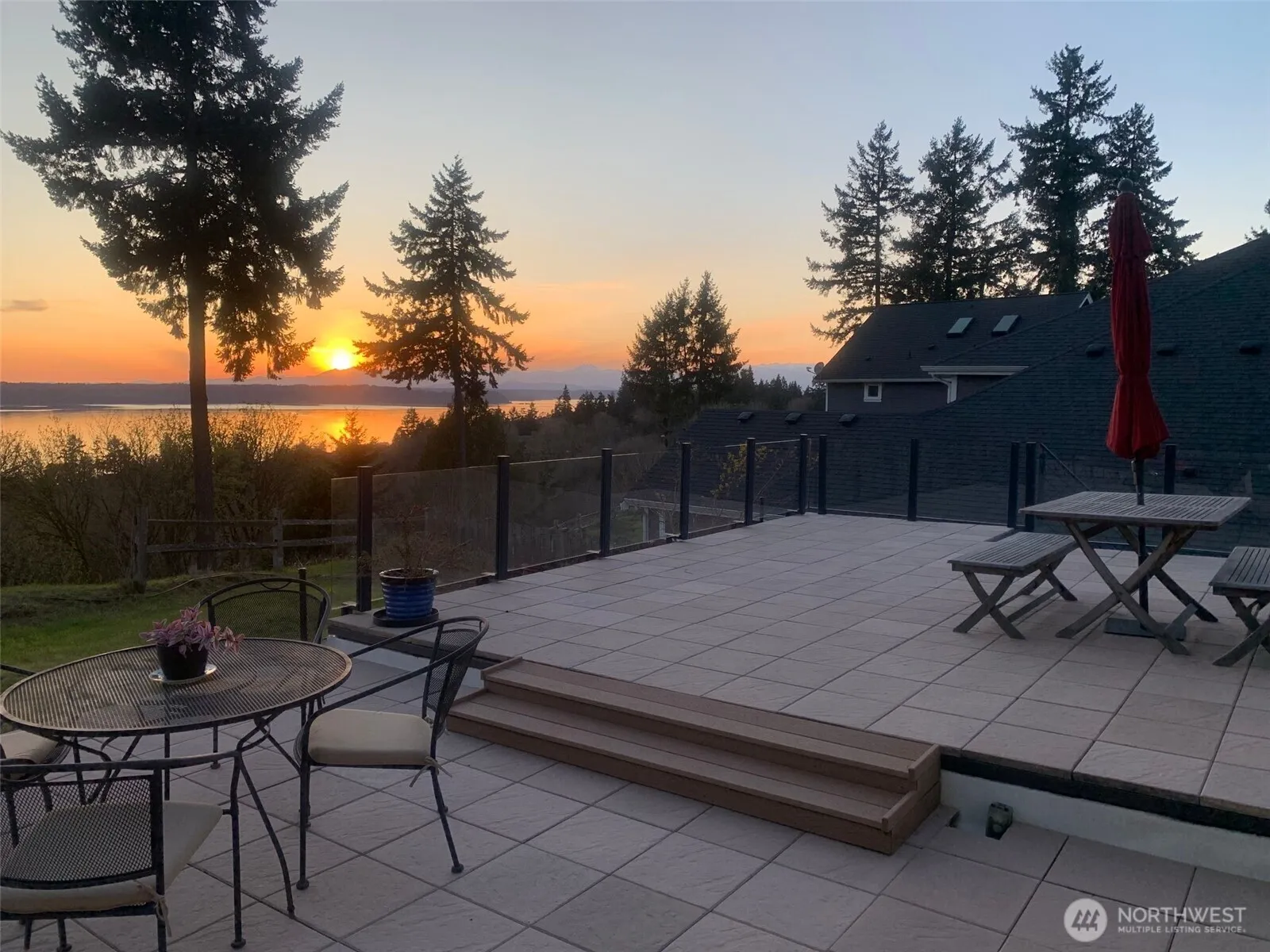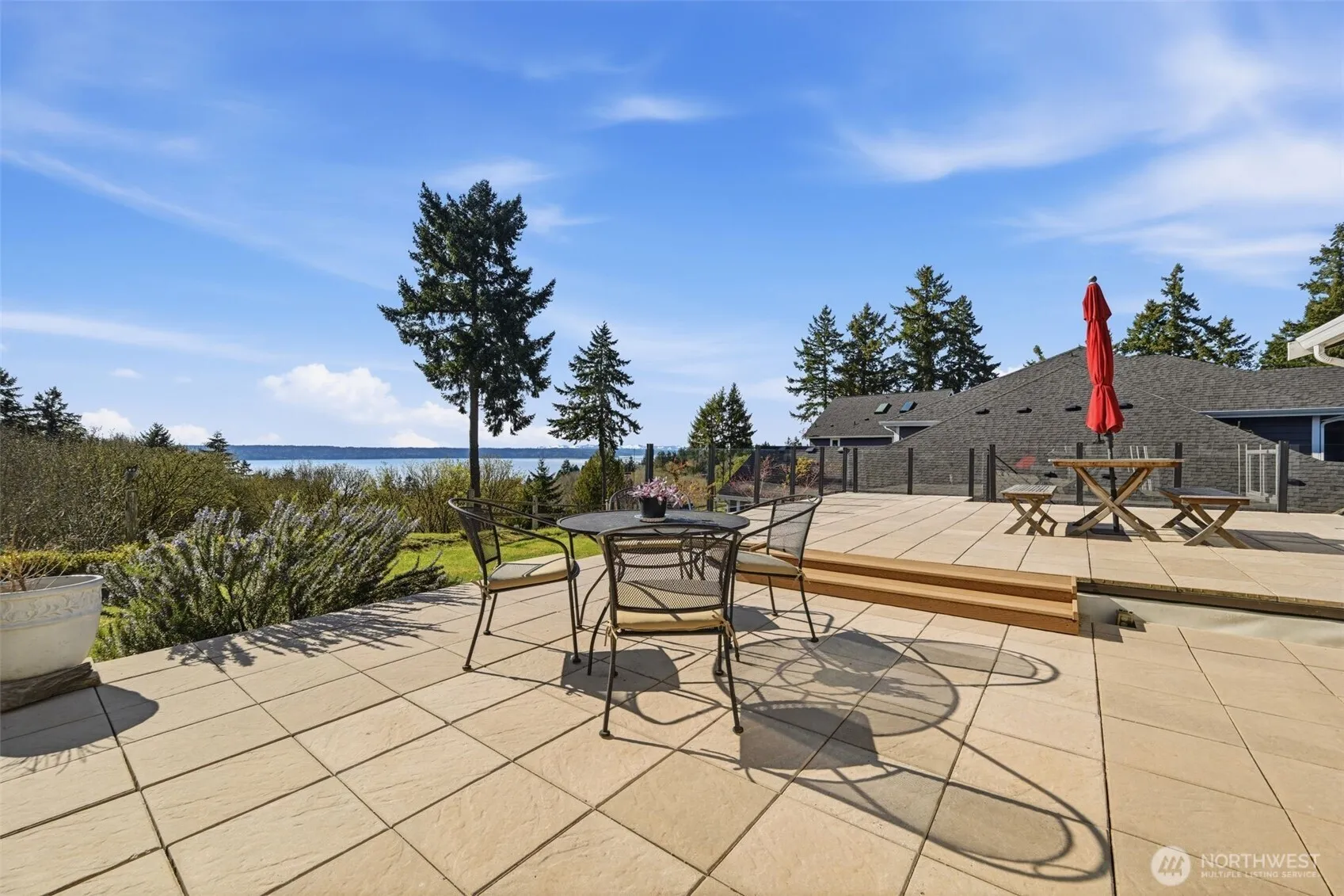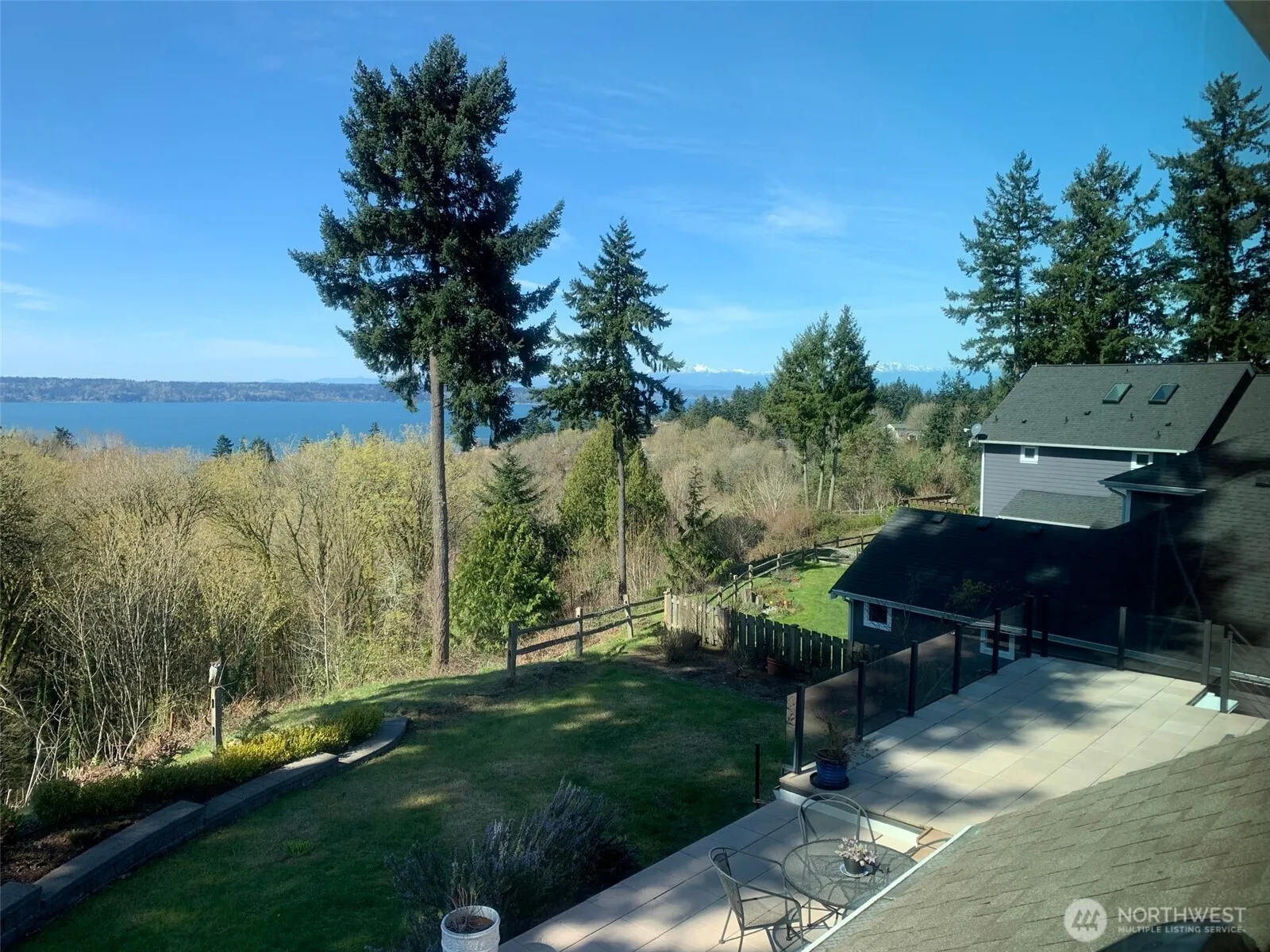 Commanding Puget Sound and Olympic Mountain views from this stunning Craftsman home in the gated Shorewood View community of Burien. Cedar shake accents, natural stone, a soaring slate-tiled foyer, and a dramatic vaulted great room with exposed beams and floor-to-ceiling windows announce the quality carried throughout all 4,170 square feet. The well-appointed kitchen features quartz countertops, center island, gas range, and stainless appliances, flowing into a sun-filled dining and living area with direct Sound views and patio access. Rich hardwood floors, warm wood trim, a fireplace, and a dedicated study with water views complete the main living spaces. The primary suite offers a spa ensuite with dual vanities, soaking tub, and separate tile shower. Outside, two distinct patio areas, an elevated stone tile patio and a lower brick patio, overlook terraced gardens with panoramic Sound views. The rare 5-car garage is a standout at any price. Convenient freeway access to Seattle, Tacoma, or Bellevue. Highline School District.