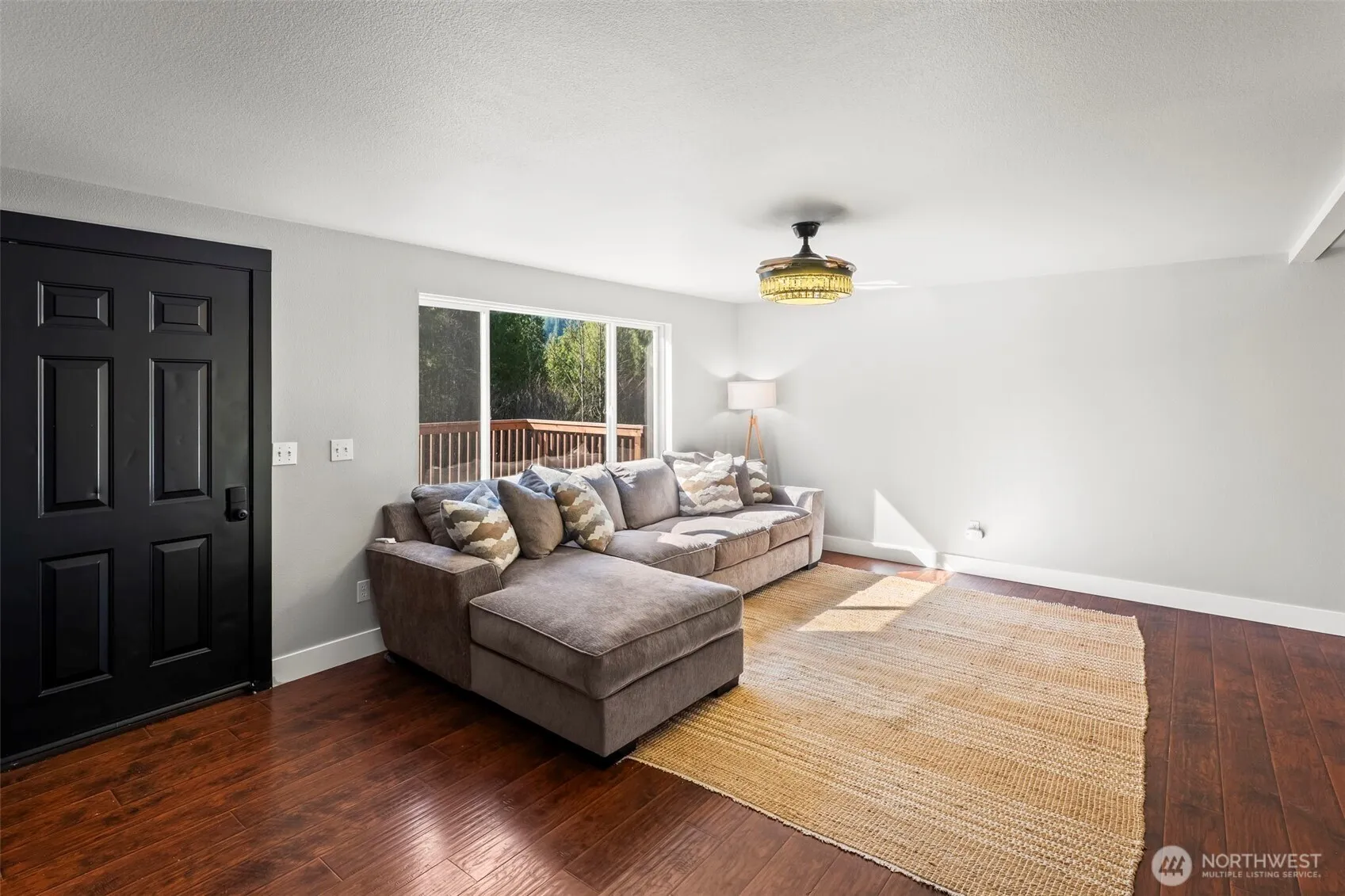 Welcome home to this fantastic property above the shores of Alder Lake! Sitting on over an acre of land on a dead-end road, this home offers privacy and ever changing nature views. Inside you’ll find brand new paint/trim & Stainmaster Pet protect carpet and padding throughout! Main floor offers spacious living room with access to the rear deck, 2 bedrooms with brand new carpet, full bath, and utility room. Refreshed kitchen features brand new stainless LG appliances. Upstairs is dedicated to the primary suite, with brand new carpet, ensuite bath, and HUGE walk in closet that could double as home office or more! Two car garage with tall ceilings and shop/storage space. Exterior has newer paint and roof, RV parking, and large garden space with outbuildings and greenhouse. Collect fresh fruit from the Apple, Cherry, and Plum trees. Newer Trex deck on front and rear of home makes for the perfect place to soak in the views. Sellers have painstakingly cleared the land and improved the lake views with tree trimming (Arborist approved). Property extends across the street for potentially more parking or shop. Seller’s job unfortunately forces move, come see the improvements made to this beautiful home and make it your own!