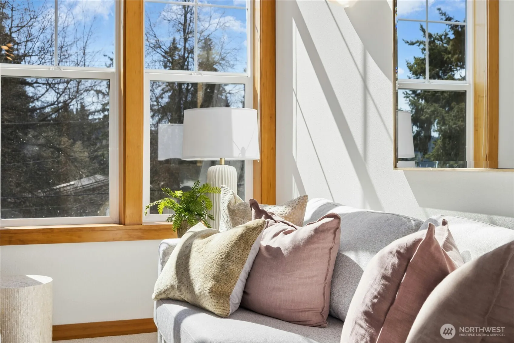 Enjoy stylish in-town living in this stunning Madrone Village town home in the heart of Winslow. This rare, three bedroom, two bath floor plan features lovely craftsmanship and quality throughout. Beautifully refreshed this spring with brand new carpet and paint, the home has gleaming hardwood floors, stainless appliances, a propane fireplace, and custom window coverings. The light and bright living room boasts soaring 18 foot cathedral ceilings and walls of windows that bring in maximum southern sunlight. A galley kitchen opens to a spacious dining area overlooking the deck. Dedicated parking space and storage closet in covered parking garage. HOA dues include water/sewer/garbage/landscaping/exterior maintenance/earthquake insurance. Fabulous central location with easy access to the waterfront, ferry, shopping, restaurants, library, parks & schools!
