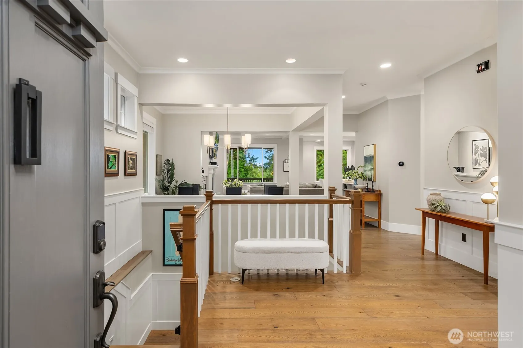 Set on over half an acre of lush, professionally landscaped grounds, this exceptional 4-bedroom Ledgestone residence captures the essence of Bainbridge Island living. Designed with both comfort and entertaining in mind, the chef’s kitchen is outfitted with premium stainless-steel appliances, a generous walk-in pantry, and seamless access to a covered deck, perfect for year-round gatherings and outdoor dining. Inside, rich hardwood floors, soaring ceilings, and elegant finishes create a warm yet sophisticated atmosphere. The thoughtfully crafted layout features a main-level primary suite for convenient living, along with a dedicated home office ideal for remote work or quiet focus. The lower level expands the home’s versatility, offering three additional bedrooms, a fitness area, and a spacious media room complete with a fireplace, perfect for relaxing evenings or hosting movie nights. A spacious three-car garage provides ample room for vehicles, storage, and hobbies. Situated in a highly desirable neighborhood near the best of Bainbridge Island’s shops, dining, and natural beauty, this home offers a rare combination of style, function, and location. Welcome to your island retreat.