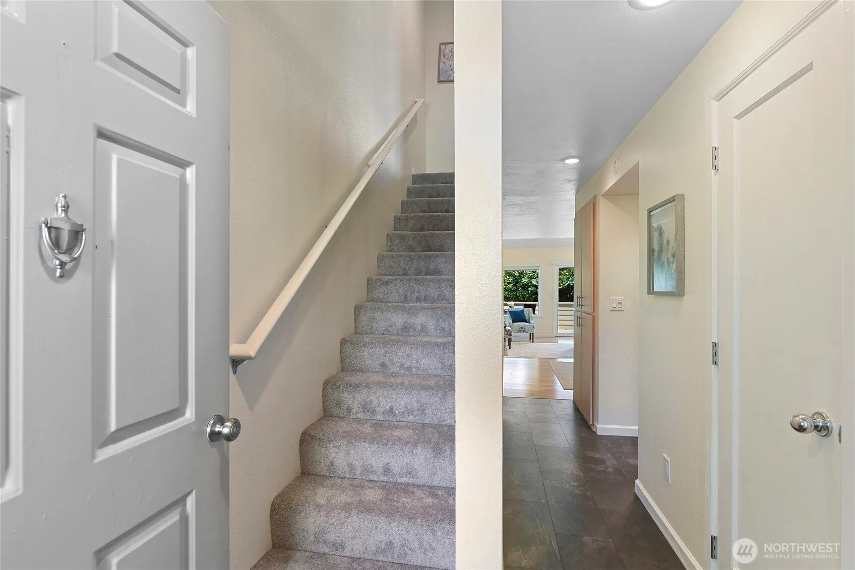 With a welcoming courtyard entrance and west-facing deck that ensuring abundant sunshine beams onto the deck and into the home, this warm and comfortable condo offers in-town living with incredible value, whether for a primary residence or for a reliable rental property. Set in Winslow on a quiet street, this home offers a true 15-minute city lifestyle: walkable access to shops, dining, medical care, parks, transit, marinas, and vibrant public spaces that support convenience, sustainability – all a spontaneous ferry ride from Seattle. This updated unit has brand new bathtub and shower surround, new luxury vinyl flooring downstairs and brand new carpet upstairs, a freshly painted exterior and bright white walls inside. The private deck, laundry next to the bedrooms, secured parking and storage in a private 1-car garage offer independence while the Winslow Park community features a seasonal pool, sauna, clubhouse, and landscaped courtyards to provide the feeling of a small neighborhood with a sense of community. This price point is hard to find in Winslow, and this turnkey home exemplifies the opportunity for this home to be yours.