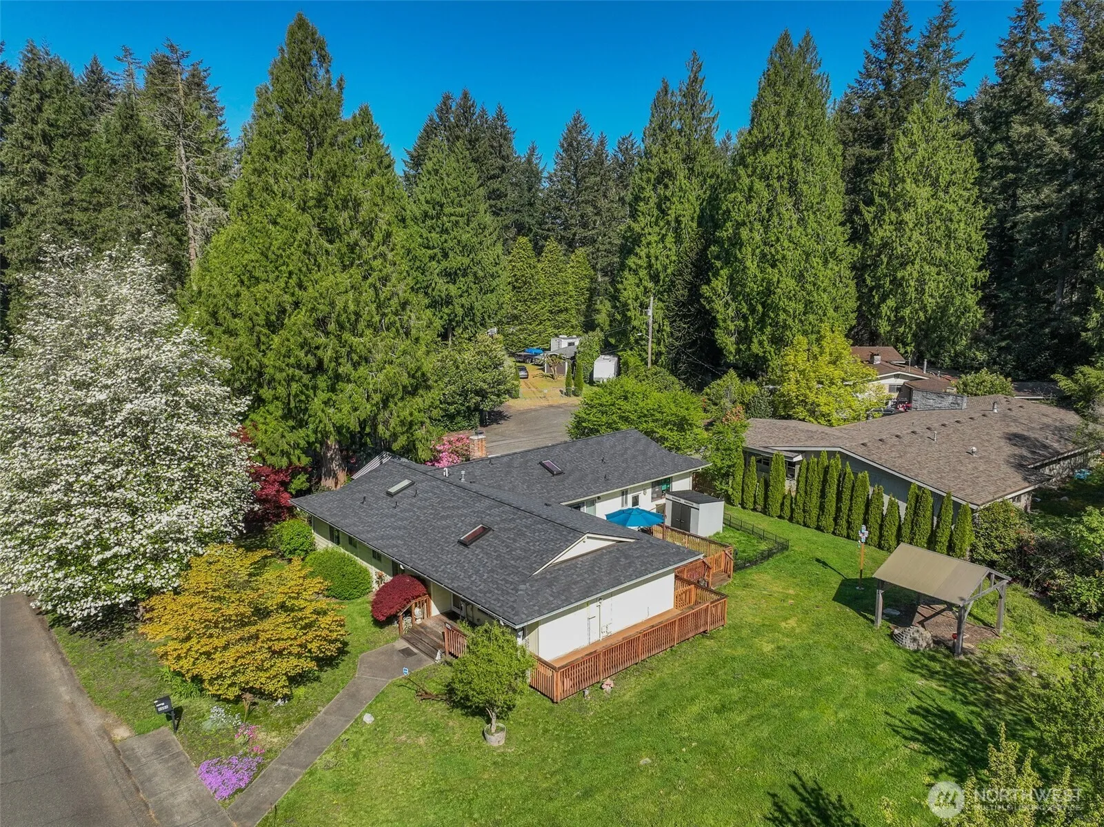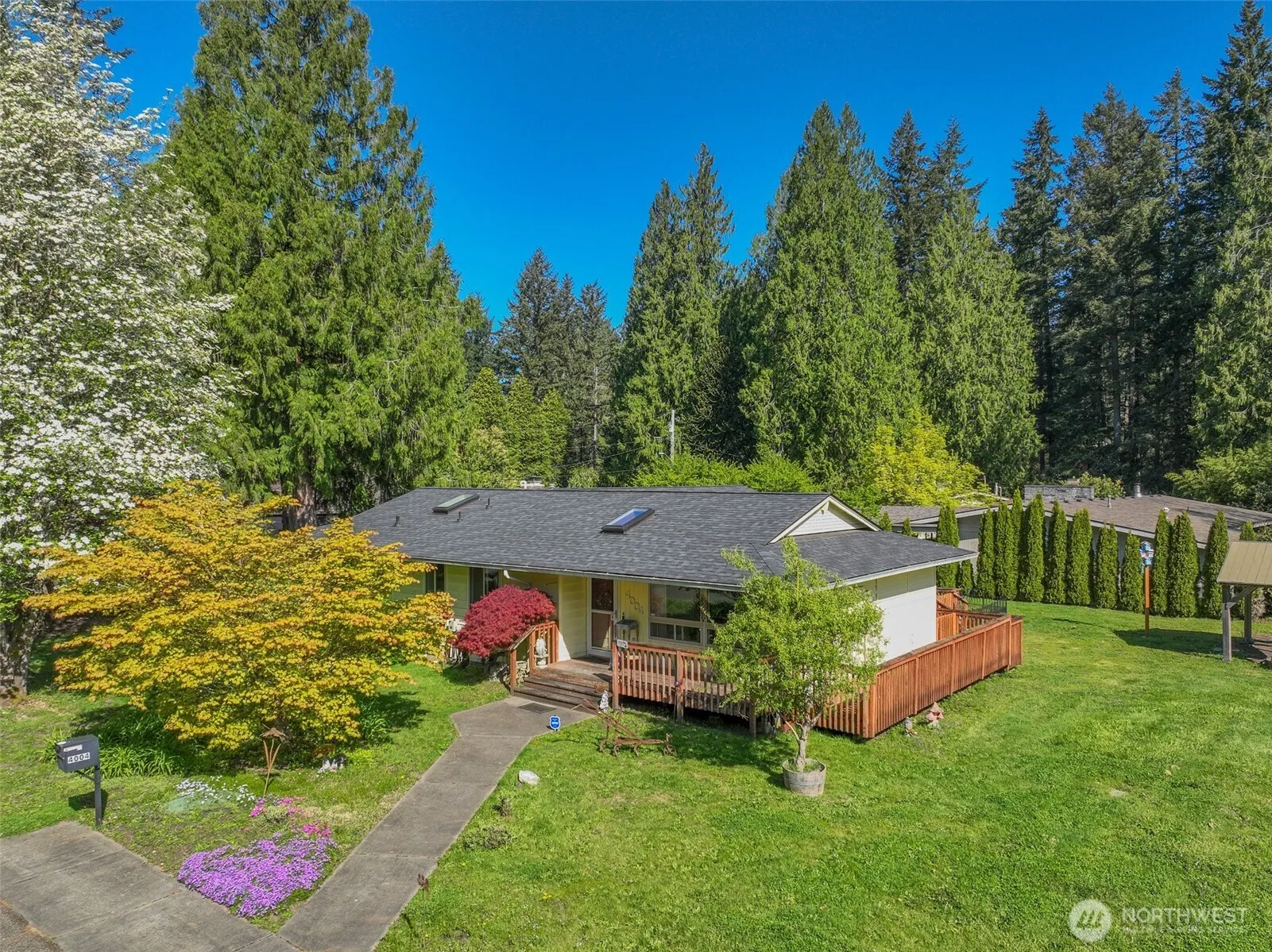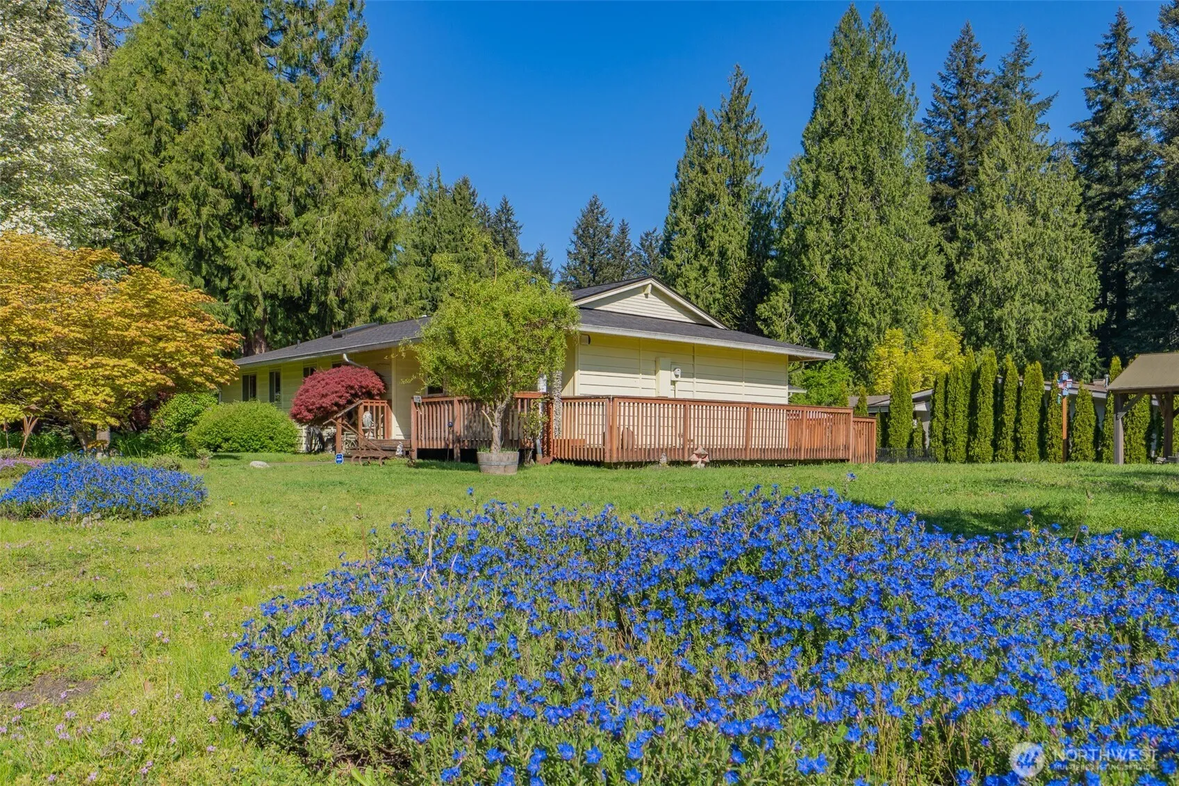 Welcome to a residence where the first impression is a masterpiece. From the moment you arrive, you’re greeted by a stunning exterior adorned with vibrant flowers. This 3-bed, 2.5-bath home offers 1,874 sq. ft. of timeless comfort, perfectly blending classic PNW charm with modern versatility. The heart of the home is an open, sun-drenched floor plan featuring a kitchen equipped with polished stainless steel appliances and tasteful pastel accents that evoke a sense of calm. However, the true showstopper lies just beyond the walls. A massive wrap-around deck provides the ultimate stage for summer soirées, overlooking an expansive yard ready for gardening or play. For your private retreat, the primary suite features elegant French doors that open directly onto a secluded, covered outdoor lounge. Complete with privacy shields and a cozy lounging area, it’s the perfect spot for your morning coffee or a quiet evening under the stars. Experience the perfect balance of indoor elegance and outdoor adventure!