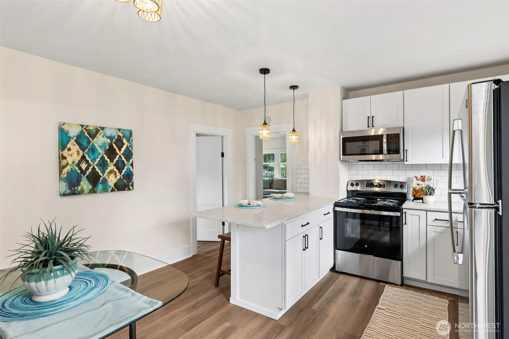 Eastside Treasure! Completely renovated — totally turn-key! All new kitchen cupboards with quartz counters and new appliances, new bath vanity, shower surround and commode, all new luxury vinyl plank flooring, fresh paint throughout, new light fixtures, new carpet on stairs and in upstairs bedroom and loft. Roof and exterior paint just 4 years old. Windows are updated, electrical panel and wiring is updated. 2 bedrooms on the main floor, 1 bedroom and office/flex space upstairs. Sunroom doubles as utility room, and soooo many possible uses for it! Detached 524 SF garage with workspace and covered porch. Back steps completely rebuilt and ready to add a deck! Sunny Southern & Western exposure for gardening! Alley access behind home for convenience to detached garage. Walkable to Lion’s Park, Vic’s Pizza, Big Tom’s and Ralph’s Thriftway! (Some rooms virtually staged!)