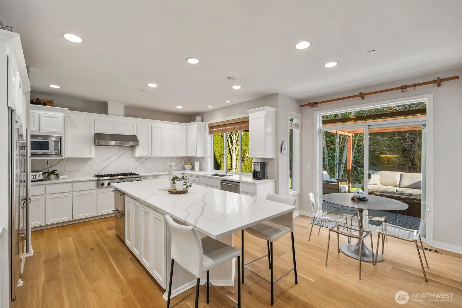 Meticulous, bright, elegant, warm, better than new beautiful Buchan resale in Mill Creek’s hidden gem community, River Crossing. This gorgeous home has 4 bedrooms, 3.75 bathrooms plus a large bonus room(5th bedroom)and a den. You will love the welcoming grand entrance with vaulted ceilings, formal living room with gas fireplace connecting to the dining room and butler’s pantry, designer colors, and wonderful Buchan millwork detail throughout. The kitchen was recently remodeled with quartz countertops, backsplash and large island connecting to the breakfast nook and family room with custom remodeled built-ins and updated herringbone tile gas fireplace surround. The large primary bedroom has beautiful greenbelt views, more millwork detail, a spa-like 5-piece bathroom with a large walk-in closet and custom closet organizers. There is new carpeting throughout the upstairs bedrooms and bonus room with custom closet organizers in 3 bedrooms. The pride in ownership greets you at the curb, and the verdant greenbelt backyard with patio is great for BBQ’s and entertaining. The home also has a Large 3 car tandem garage and a new A/C. River Crossing is Mill Creek’s most walkable community just a couple of steps over the bridge to the Mill Creek Town Center, North Creek Trail, restaurants, shopping, coffee shops, close to miles of walking trails, multiple parks, the Mill Creek Country Club and Golf course. River Crossing is the heart of Mill Creek and has it all.