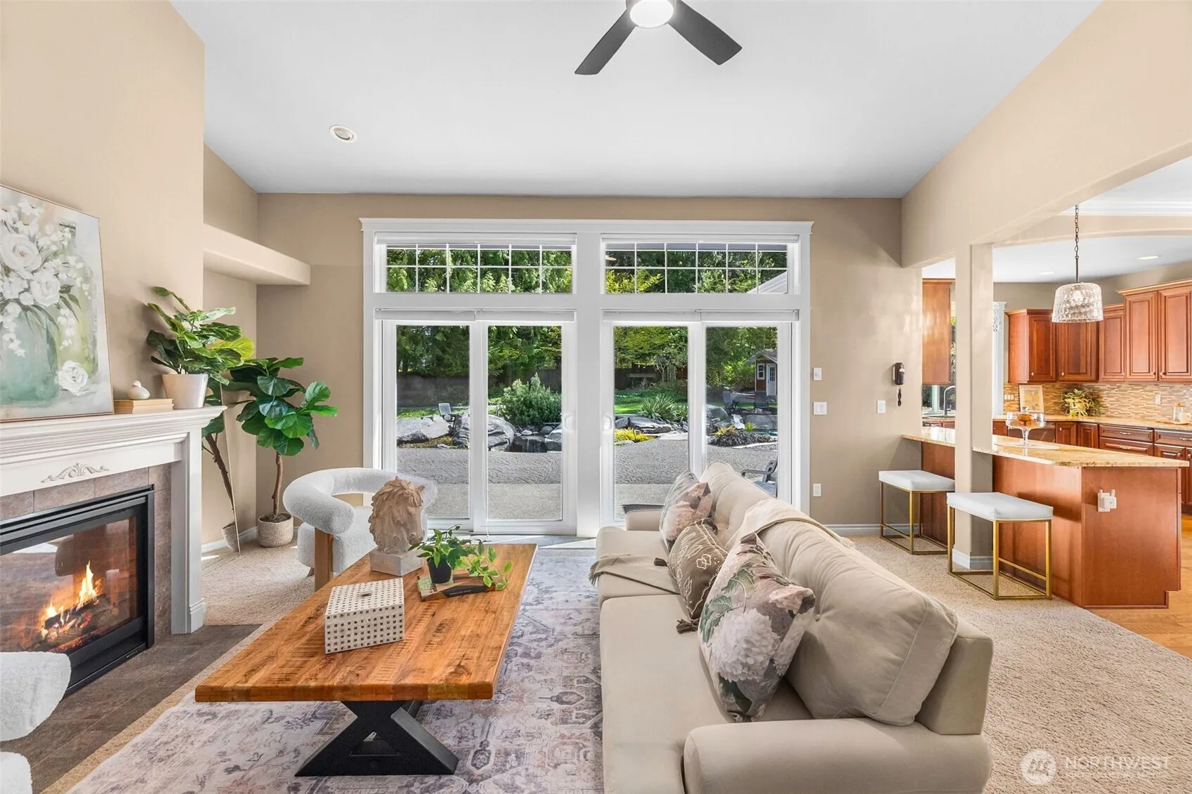 Welcome to Water Garden Escape on Cooper Point. Anchored in versatility w/a stunning 160± sf water feature inviting you to unwind w/the soothing sounds of a babbling brook while your private sports court & putt-putt add an element of playfulness & fun. Expansive windows invite the outdoors in, filling your home w/natural light & serene sights & sounds of the PNW. Quality craftsmanship, warm granite surfaces, rich hardwoods, tile, marble & beautifully appointed spacious kitchen & LR, multiple sliding glass doors spilling out to your own peaceful seclusion. Vaulted ceilings complemented by updated modern lighting & ceiling fans. Main-level primary ensuite is a true retreat, w/spa-inspired bath & double-sided FP. Upstairs, two addt’l bedrooms, full bath, bonus room w/wet bar provide ideal space for guests & entertainment. Stunning outdoor living space w/wraparound deck overlooking a pond that can easily be reintroduced to koi. Multiple entertaining spaces, including 100± sf back patio w/flowing garden ponds, trails, firepit & outdoor lighting. The property is surrounded by mature landscaping, featuring cedar, pine, apple trees, native plants & an abundance of wildlife. Gated access points, RV parking, outbuildings, sprinklers & thoughtful infrastructure (40 year roof) enhance both beauty & function. Insulated three-car garage w/workspace, utility sink, generator wiring, high-efficiency furnace w/AC. Located just minutes from the Puget Sound & the conveniences of West Olympia.