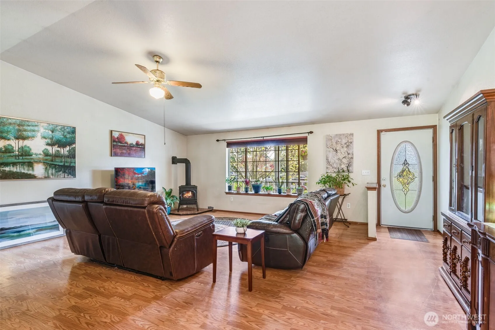 Welcome to your own slice of peaceful paradise in the highly desirable Lake Forest community—where charm, space, and lifestyle come together effortlessly. Set on a lush, park-like half-acre, this inviting rambler offers room to relax, play, and dream, with a convenient double gate providing ample space for your RV, boat, or trailer—perfect for those who love adventure as much as they love coming home. Discover a gardener’s delight, complete with a hugelkultur garden bed, blooming flowers, and established blueberry bushes ready for summer picking, along with a detached shed for storage and a newer roof (just four years old) for added peace of mind. Inside, natural light pours through beautiful bay windows, highlighting vaulted ceilings and creating a bright, airy living space, while a freestanding gas stove adds warmth and cozy ambiance, making it the perfect place to unwind; the dining area showcases elegant hardwood floors that elevate everyday living. The kitchen blends style and function with stainless steel appliances, including a newer refrigerator (2 years), dishwasher (4 years), and range (7 years), while all three bedrooms feature brand-new carpet. Enjoy exclusive gated access to Long Lake, where a private dock and boat launch invite you to fish, kayak, swim. As evening falls, settle onto your patio and take in the magic of golden hour, watching sunlight filter through the trees and feeling a deep sense of calm- this is more than a home, it’s your everyday escape.