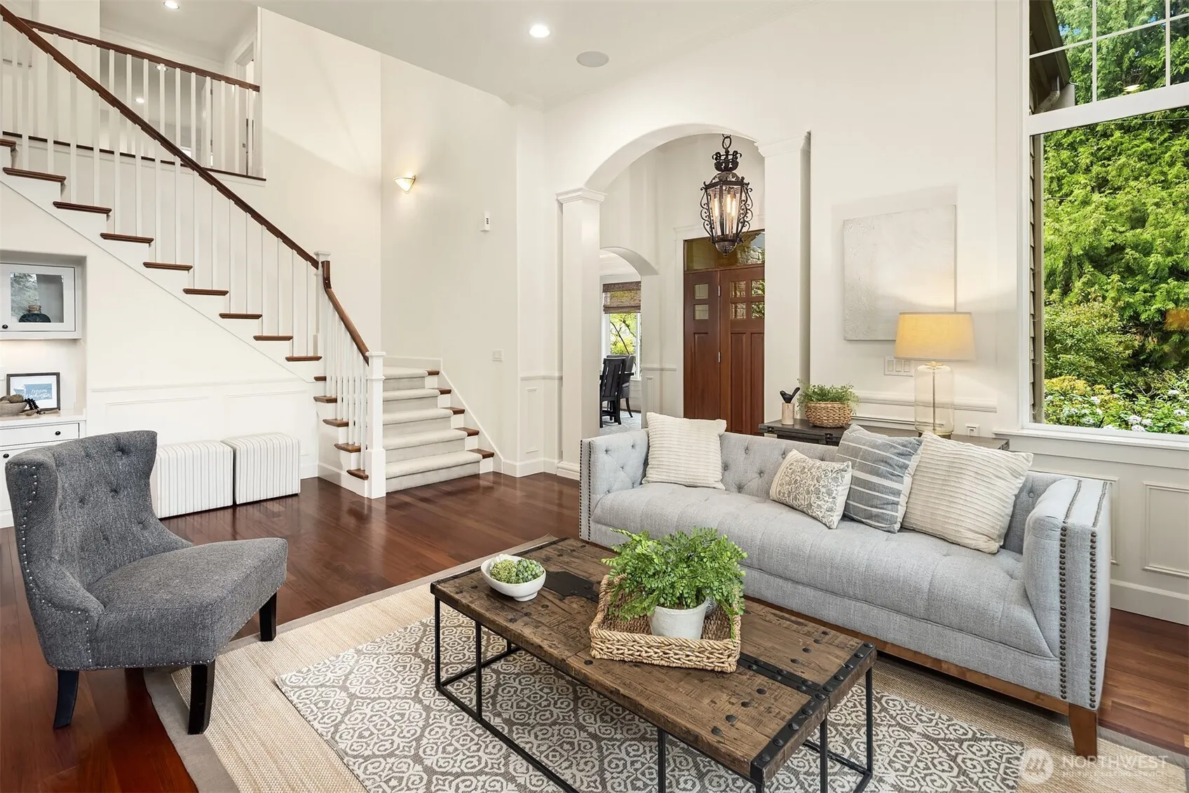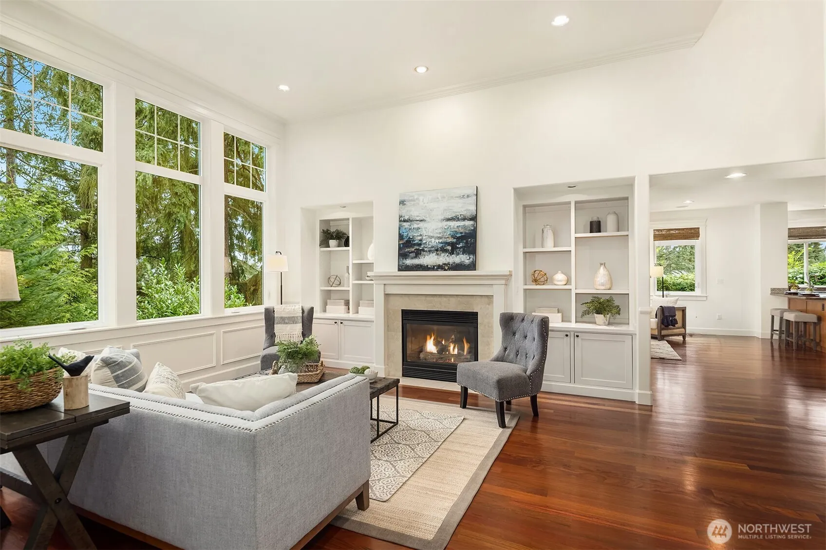 Nestled in a prime location with effortless access to both Bellevue and Seattle, this residence offers the perfect balance of tranquility and convenience in walking distance to Bellevue’s Old Main St. Invite guests into the light-filled formal living & dining rooms boasting soaring ceilings. Stunning cabinetry adds a timeless elegance to the home while providing plenty of storage. The inviting kitchen features a charming dining nook that opens directly to the lush garden patio and curated garden. The main floor en-suite office can serve as an ideal guest room or 5th bedroom. Upstairs the primary bedroom sanctuary has a spa inspired bathroom with a dual sided fireplace, large walk-in closet and a sumptuous bathtub. The upstairs also has a large bonus room and three spacious bedrooms. Completing the property is a large kitchen pantry, three car garage, a very large storage room, A/C, landscape lighting and more. Welcome Home!