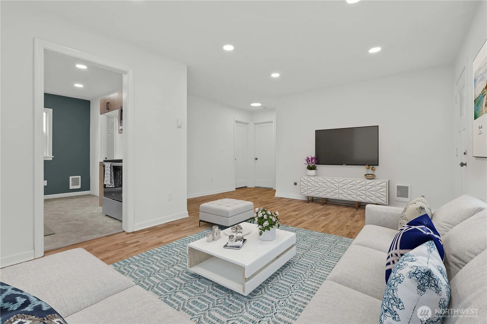 Welcome to this beautifully updated 2-bedroom rambler in Tacoma, perfectly situated on a fully fenced, nicely manicured lot. This charming home features a cozy living area with refinished hardwood floors that seamlessly flow into the bedrooms, adding warmth and character throughout. The updated kitchen offers modern cabinetry, sleek quartz countertops, and a clean, contemporary feel. Enjoy a pristine bathroom, along with fresh interior and exterior paint that makes the home truly move-in ready. Outside, you’ll find a large detached garage with ample space for parking, storage, or a workshop, plus room to create your dream garden. A perfect blend of comfort, style, and functionality—don’t miss this one!