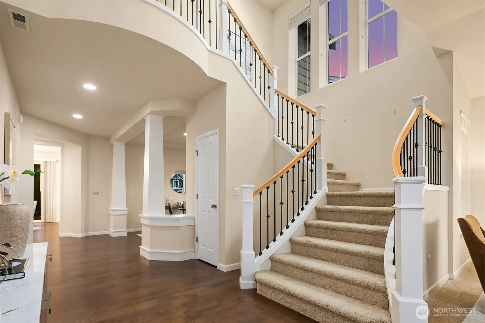 Modern comfort, quiet cul-de-sac location, and a thoughtful layout define this 5BR Lynnwood home in the desirable Martha Lake neighborhood. Soaring ceilings and skylights help make interior bright with an open feel. Eye-catching staircase leads to upstairs landing with overlook balcony. Formal dining area features elegant, coffered ceiling. Gourmet kitchen offers premier stainless appliances, large island, and pantry closet. Entertainers will appreciate the great room with fireplace and easy access to patio in the fenced and tree-lined backyard oasis. Primary bedroom suite, accessed through French doors, includes ensuite bath with soaking tub as well as spacious walk-in closet and dramatic ceiling. Attached two-car garage with space for storage or work area. Convenient commutes on nearby I-5 and I-405 and close to dining/shopping of Alderwood Mall and Mill Creek Town Center. Located in academically distinguished Edmonds School District.