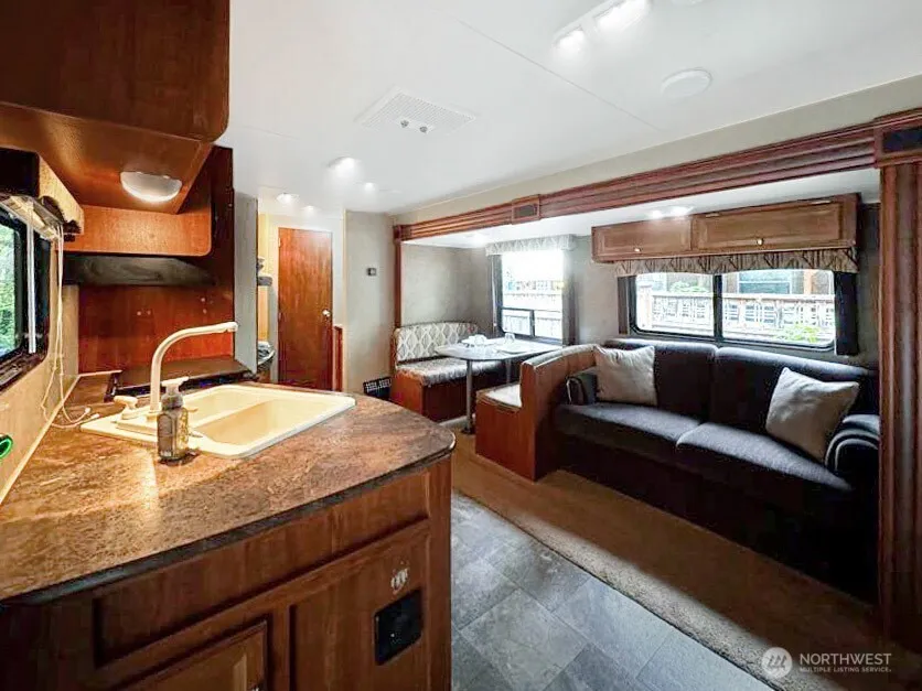 Escape to the mountains with this well maintained 2017 Jayco Jay Flight trailer, complete with a durable metal auxiliary roof and spacious covered deck. Designed to comfortably sleep 8 guests, this getaway is perfect for relaxing weekends and hosting friends. Inside, the trailer features LED lighting, warm maple cabinetry, air conditioning, a full bathroom, and double bunk beds that provide plenty of sleeping space. The lot is thoughtfully set up for outdoor enjoyment with a golf cart shelter, powered storage shed, and space to add a gazebo. A large fire pit creates the perfect gathering place for cozy evenings. Located within the gated community of The Glen at Maple Falls, with 24-hour security, owners enjoy access to a wide range of amenities including Nooksack River access, parks, trails, playgrounds, swimming pools, disc golf, and community events throughout the year. This property is being sold fully furnished, making it ready for immediate enjoyment. Conveniently located just 30 minutes from Bellingham and about 15 minutes from Mt. Baker and Silver Lake, it offers easy access to year-round recreation and adventure. Community guidelines allow recreational use up to 120 days per year and do not permit rentals.
