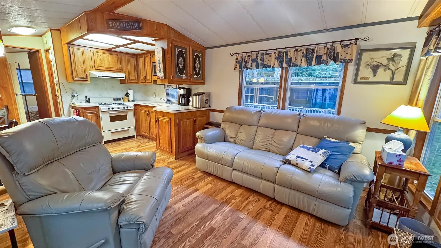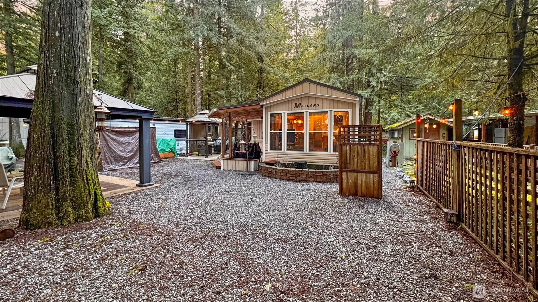 Beautifully maintained and designed for comfortable living, this 120-day-use vacation property offers expanded outdoor spaces with exceptional features ideal for relaxing and entertaining. A covered 162 square foot dry Trex deck creates the perfect setting to enjoy the outdoors in any season, while the spacious bump-out room provides valuable additional interior living space suited for a sitting area, guest accommodations, or home office. The outdoor amenities truly stand out, including a 7-1/2 by 11-1/2 shed with a covered porch that offers flexible space for hobbies or storage, along with a separate storage shed for tools and equipment, and covered dry firewood storage. Two inviting gazebos enhance the property, one set over the fire pit for cozy evenings and the other over the Weber grill, making outdoor dining and gatherings effortless. A standpipe on the main water line helps prevent freezing during the winter months, adding year-round peace of mind. Community amenities include two swimming pools, river access, scenic trails, laundry facilities, sports courts, and 24-hour gated security. Light-filled and privately situated, this move-in-ready retreat offers comfort, versatility, and an exceptional lifestyle opportunity.