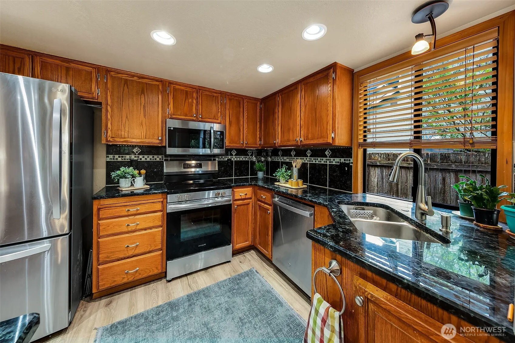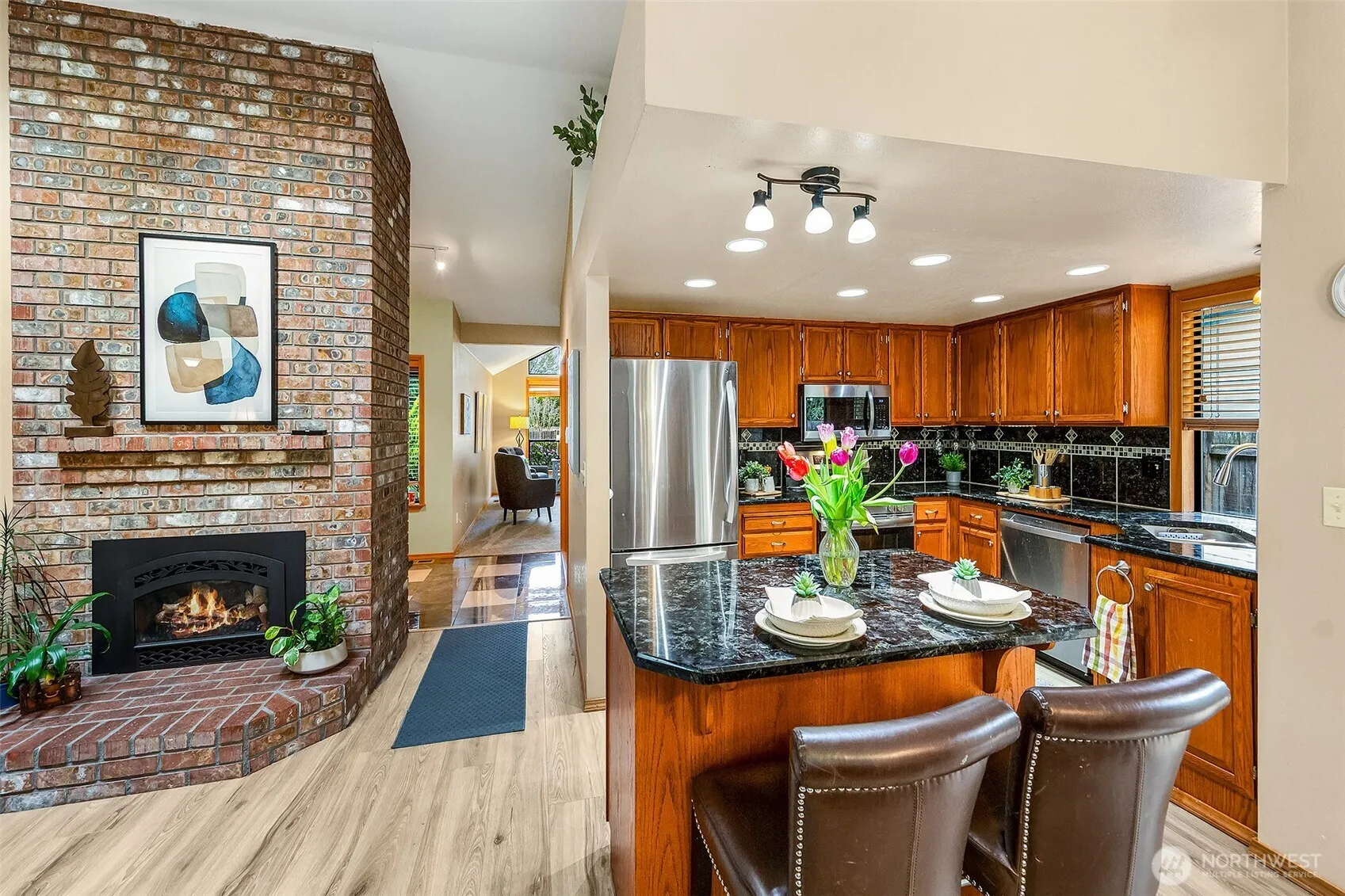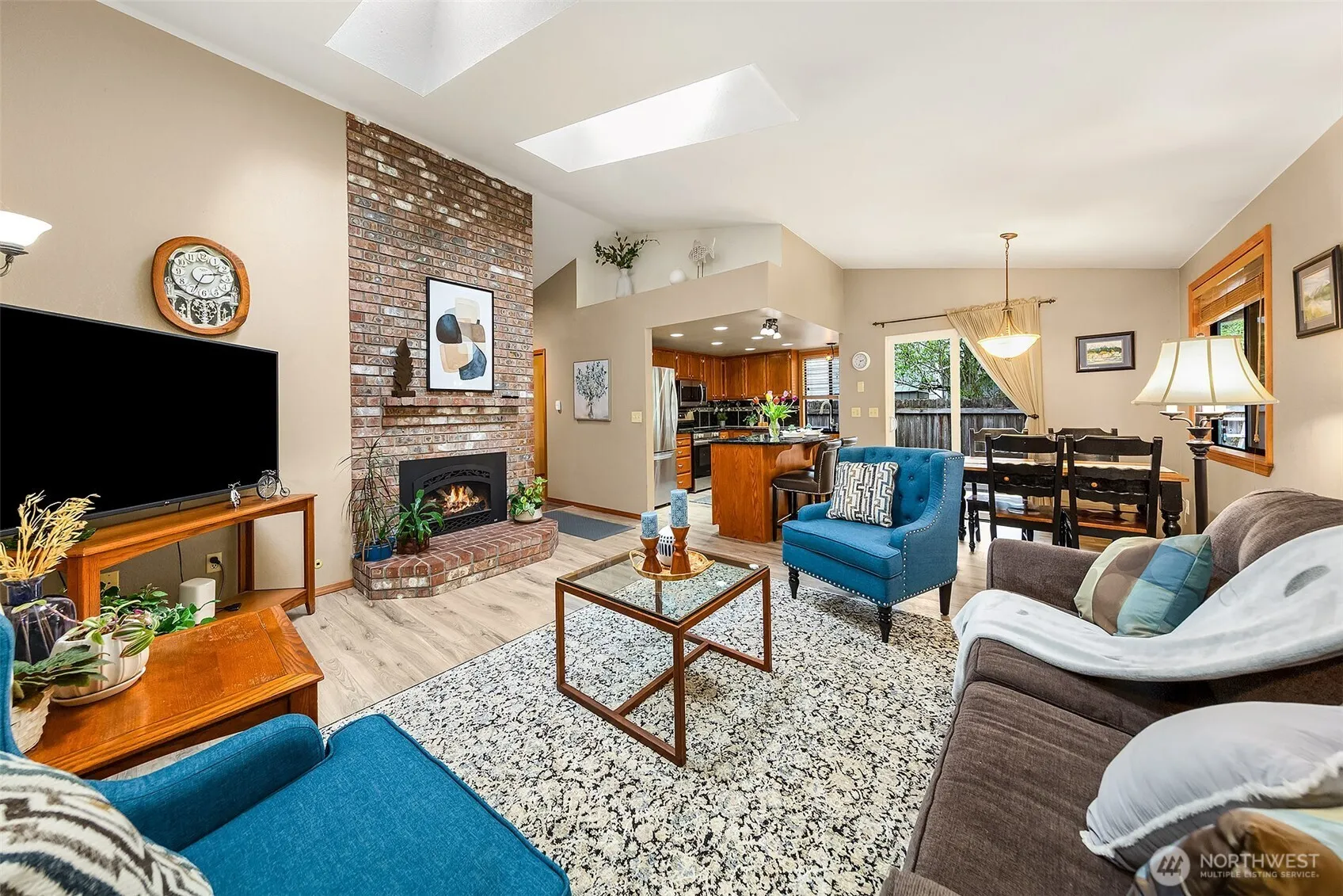 Discover your perfect retreat in this exquisite and rare Marysville Rambler! Immaculate 3-bed, 2-bath home spanning 1,800 sq ft offers a harmonious blend of style and comfort. Bright living room and family room with gas fireplace, formal dining, and newer LVP flooring complement vaulted ceilings and skylights. Generous kitchen with granite counters, eating bar and ample storage. Enjoy central A/C and gas heat. Unwind in the private, fully fenced backyard featuring mature landscaping and a large, covered composite deck, ideal for year-round BBQs! And all this backs up to Northpointe Park! Enter through the side rolling drive gate to find a dream shop built in 1997, complete with 10′ ceilings and gas heater. Secure covered RV/boat parking awaits. Just minutes to I-5, shopping and more. No HOA!