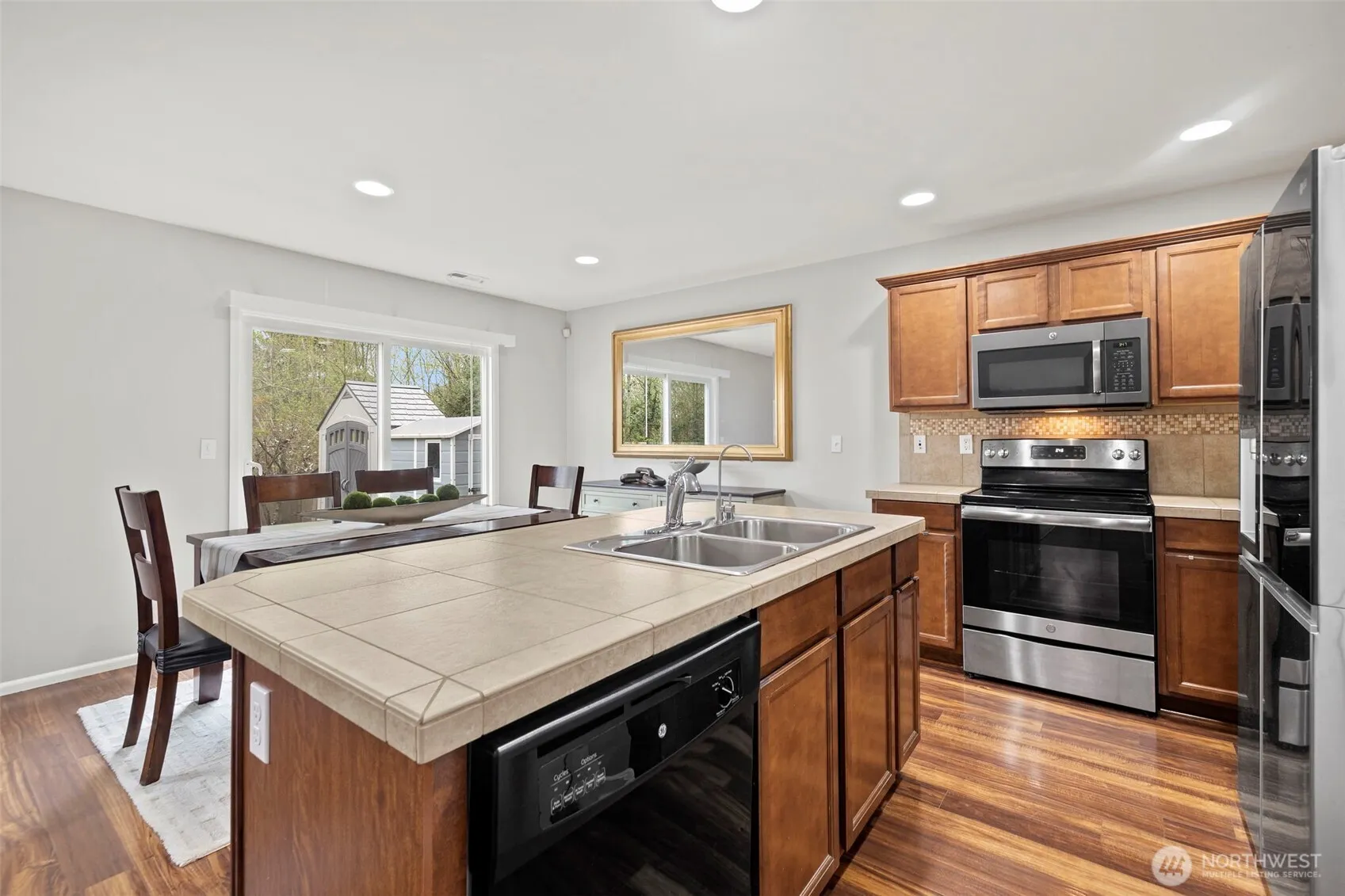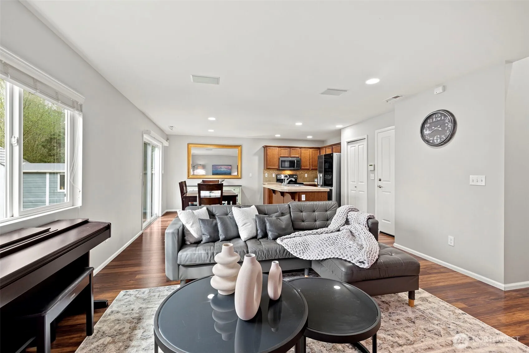 Beautifully maintained EAST-FACING home in a highly desirable neighborhood North Creek, an ideal starter home in the Laurelcrest community by D.R. Horton. The light-filled interior is enhanced by its east-facing orientation. Step outside to enjoy a unique blend of openness and privacy. A large HOA-maintained yard sits right next to the home, providing additional green space without the maintenance. Beyond the backyard lies a tranquil greenbelt, offering peaceful views and enhanced privacy—rare features at this price point. The open-concept main level offers seamless flow between kitchen, dining, living area-ideal for everyday comfort and entertaining. Equipped with modern conveniences including in-wall CAT5 wiring and built-in speakers. Stay comfortable year-round with central AC, ensuring a pleasant indoor environment in every season. This home offers a spacious, level, fully fenced backyard for outdoor entertainment with garden beds where you can grow your own plants. One of the standout features of this home is its exceptional setting. Located just a few blocks from North Creek High School within the highly sought-after Northshore School District. Conveniently located near shopping, dining, and major commuting routes including I-405. Laurelcrest residents enjoy access to 1.5-acre community park, athletic court, pea patch. Do not miss this home with perfect balance of natural serenity, community and convenience in a prime Bothell location. Pre-inspected for peace of mind.