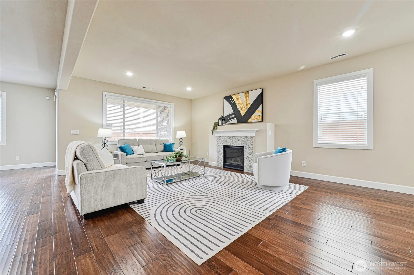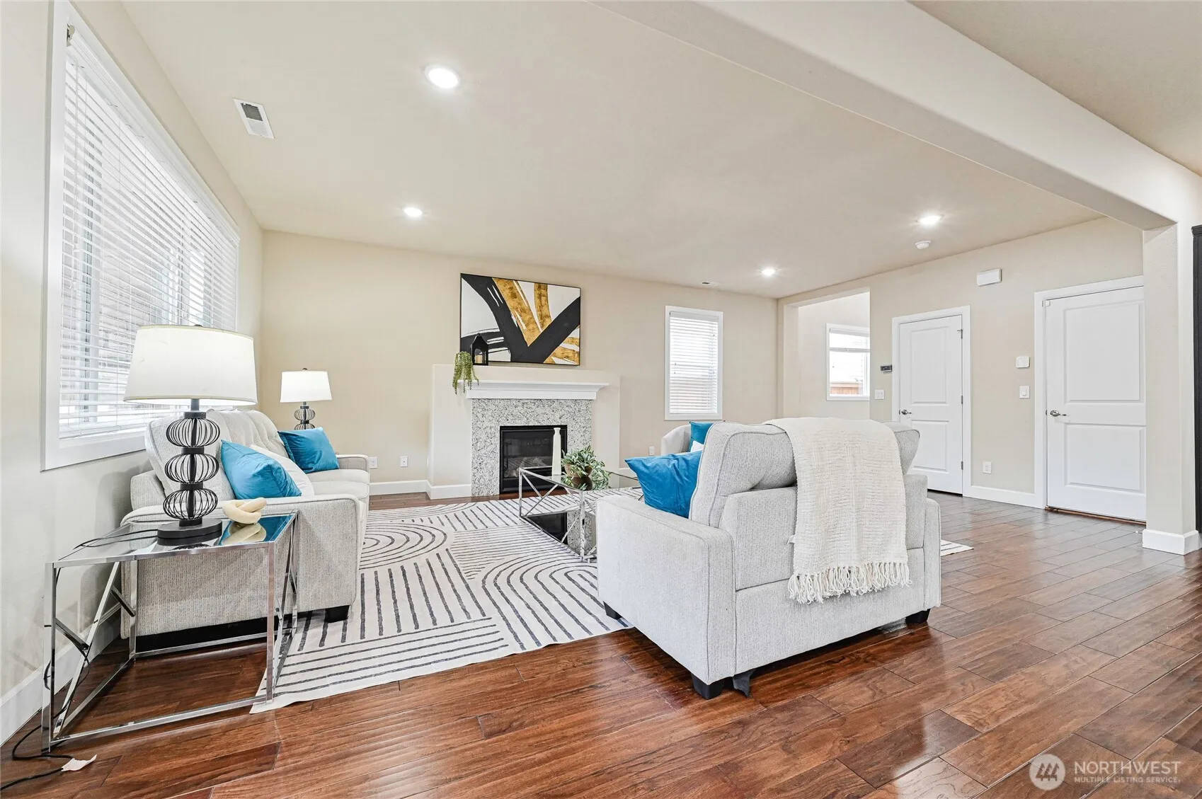This beautifully maintained EAST-facing home offers a spacious, open main floor with vaulted ceilings, hardwood floors, a striking metal staircase, a cozy gas fireplace, and a convenient half bath on the main level. The kitchen is truly the heart of the home, featuring a large island with seating, double ovens, and a cooktop with an exhaust hood that’s less than a year old. A dedicated pantry and abundant cabinet storage add to the home’s functionality.Upstairs, you’ll find a versatile LOFT area at the top of the stairs, along with four well-sized bedrooms featuring BRAND NEW carpet throughout. The primary suite includes a spa-like five-piece ensuite bath and a walk-in closet. The remaining three bedrooms are generously sized, with two offering built-in wardrobes, making them perfect for organized and manageable rooms. The laundry room is also conveniently located on this level and includes additional built-in storage.Out back, the fully fenced yard features upgraded pavers and a covered patio with a gas outdoor fireplace, ideal for year-round enjoyment—rain or shine. The home also includes CENTRAL A/C, and the two-car, EV-ready garage is equipped with a pre-wired 240V outlet.Tambark Creek Park is just one block away and spans 40 acres, offering walking trails, soccer and baseball fields, a children’s play area, and a dog park. The elementary school is within walking distance, with excellent schools nearby at every level—elementary, middle, and high school.