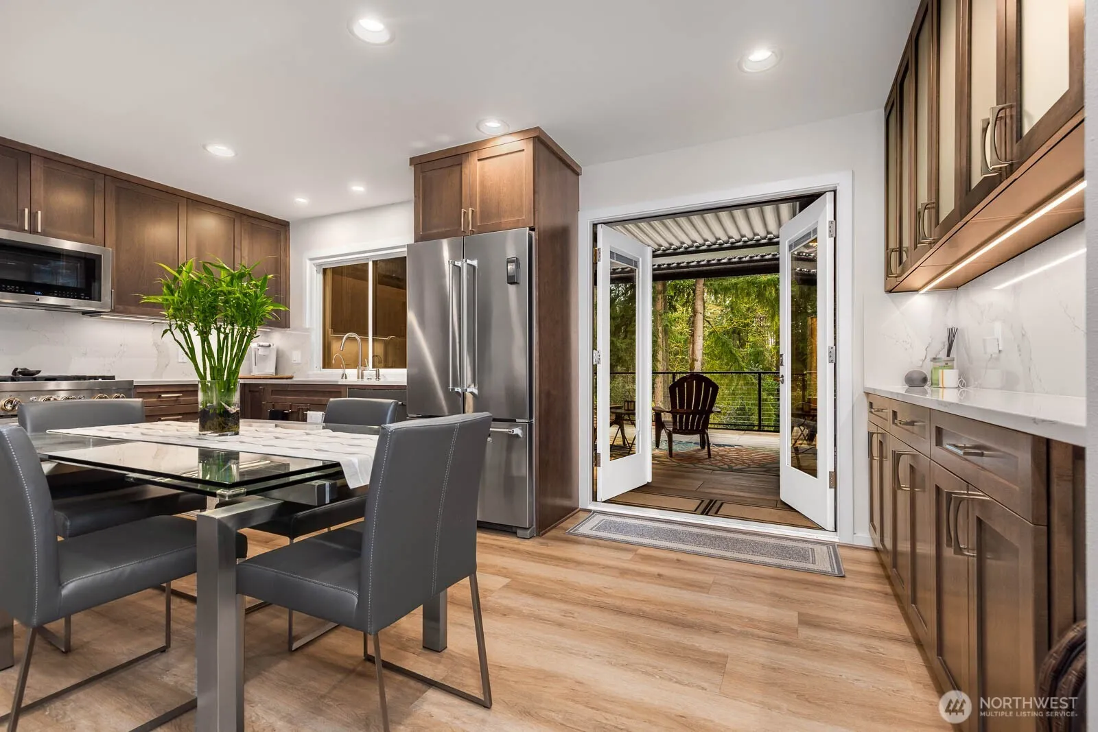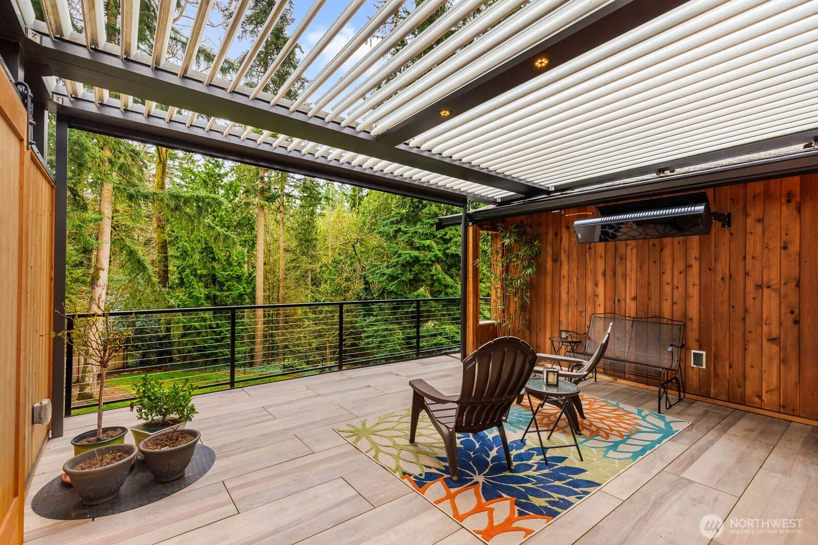 Tucked at the end of a quiet cul-de-sac in the coveted Northshore School District, this Bothell residence rests on a lush quarter-acre greenbelt, offering rare privacy and versatility with a fully permitted ADU. Thoughtfully curated updates and refined indoor-outdoor living create a move-in ready retreat suited for multigenerational living, income potential, or elevated entertaining. Light-filled main living spaces open to a showstopping covered patio featuring articulating louvers, automated screens, a high-output gas heater, and rich cedar accents. A pass-through bar connects seamlessly to the kitchen, creating an effortless year-round entertaining experience. Refreshed baths, a spacious primary suite, and tranquil tree-lined outlooks enhance the home’s sense of comfort and seclusion. The lower-level ADU offers a private, self-contained living experience with a full kitchen, laundry, flexible bonus space, and separate entrance—ideal for guests or premium rental income. Outdoors, enjoy professionally designed landscaping, and a 200 sqft future-ready pad for a luxury outdoor kitchen, or studio. Ideally located near parks, trails, and commuter routes, this is a rare blend of privacy, sophistication, and modern Northwest living.