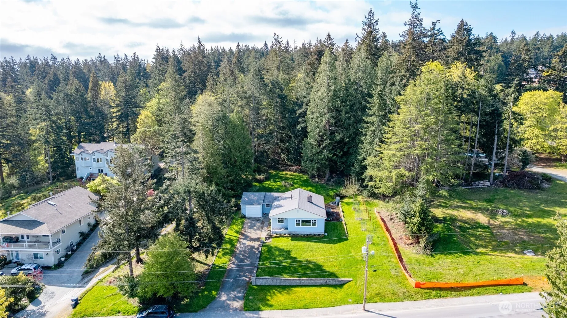 Classic 1950’s rambler with modern updates throughout. Peaceful park-like setting tucked off the road w/ partial water views of the Guemes Channel and islands. 3 parcels totaling approx. 17,859 sqr ft. Gorgeous remastered kitchen: Quartz ctps, easy close shaker cabinetry, a 5 burner gas range, stainless applcs and a pantry/storage cabinet. Luxury plank vinyl flooring runs throughout the home. Large laundry room w/sink and water views. The full bathroom offers quartz counters, cement tile floors and a tile shower surround w/ tub. Living room features painted wood lap ceilings, cozy fireplace and a wall of windows for tons of natural light. Exterior features: new stone terraced wall, newer roof (2020) and fresh exterior paint. Deep one car garage w/ attic storage & a workbench. Mini apple orchard w/ Cosmic Crisps and a large storage shed. 2nd parcel behind the home-possible ADU (additional dwelling unit) or a nice big SHOP?? Or retain as a generous private back yard. Central location close to town, ferries, the waterfront, trails & parks. Buyer to verify all information to their satisfaction.