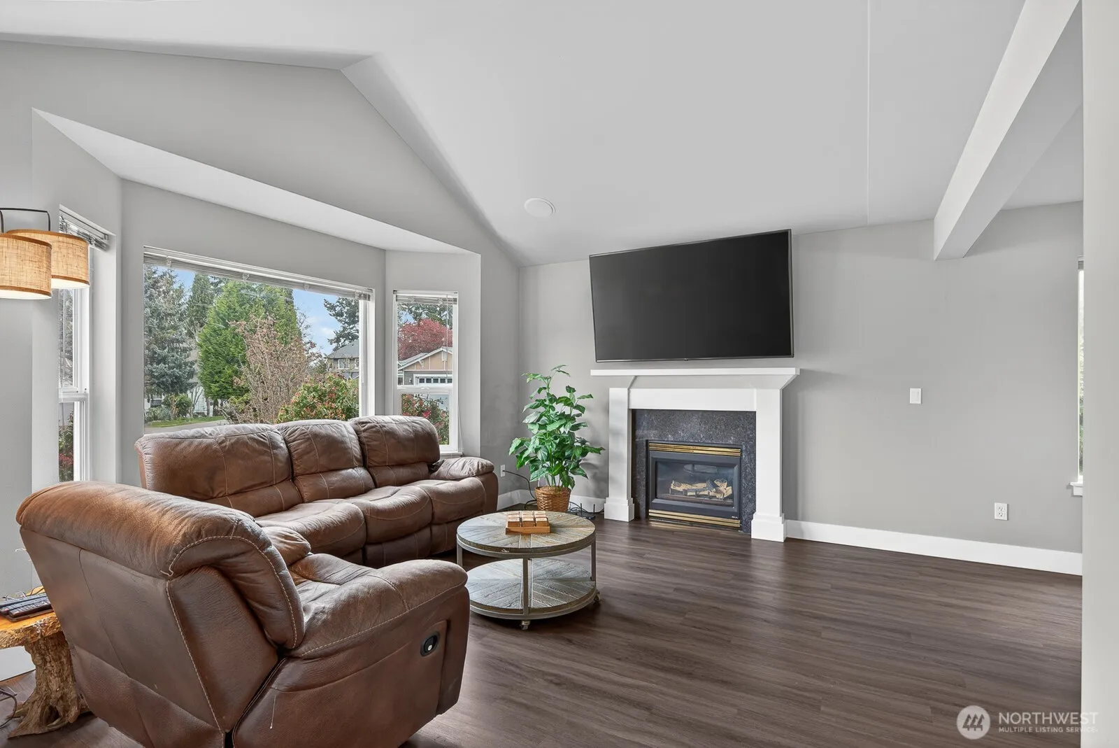 A sense of space and calm greets you the moment you arrive, set on a cul-de-sac, this home unfolds with volume, light, and an effortless flow that simply feels right. Vaulted ceilings and expansive windows elevate the main living space, where a warm, inviting living room with a cozy fireplace anchors the home and transitions seamlessly into the dining and on to the kitchen and utility room designed for connection, conversation, and everyday ease. The kitchen offers generous prep space, abundant cabinetry with a secondary living area giving flexibility for media, play, or a relaxed gathering space that adapts as life evolves. Plus a natural extension to the backyard creates an easy rhythm of indoor-outdoor living for morning coffees, summer evenings, and room to truly spread out. Upstairs, the primary suite has a generous layout with a walk-in closet and a well-appointed ensuite featuring dual vanities, soaking tub, and separate shower. Additional 3 bedrooms are bright and versatile for all whether it’s guests, office or lifestyle needs. Outside, the fully fenced yard is both functional and inviting with level lawn, established landscaping, and patio space ready for entertaining or quiet moments. The oversized garage and driveway plus thoughtful storage throughout support both lifestyle and practicality. All of this in a location that balances privacy with convenience, just minutes to town, parks, trails, and the best of Anacortes living.