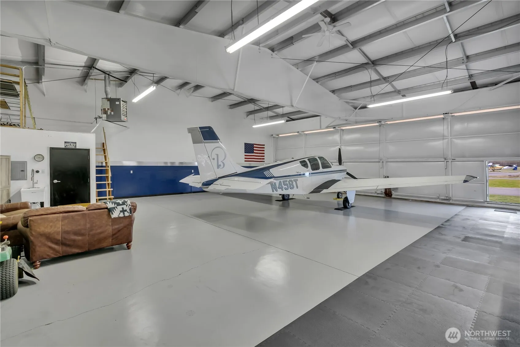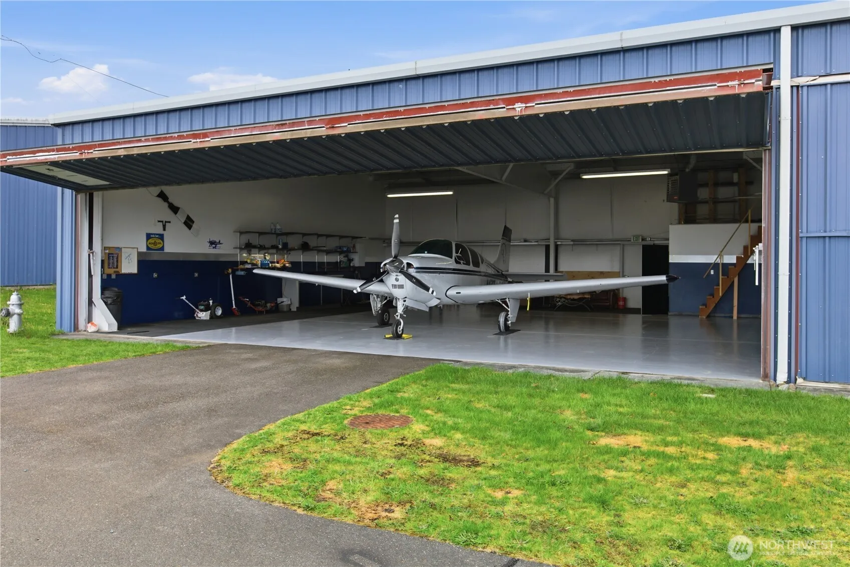 Opportunity to own at Pierce County’s Thun Field (KPLU). Hangar is east facing and located near mid-field with easy access to the taxiway and runway. Space is 45′ x 45′ with a Schweiss bi-fold door (opening is 42’6″ x 9’6″), enough space for multiple aircraft. The floor is freshly painted, and the nicely updated bathroom has loft space above for storage. Unit is insulated with a forced air gas heater making it comfortable all year.