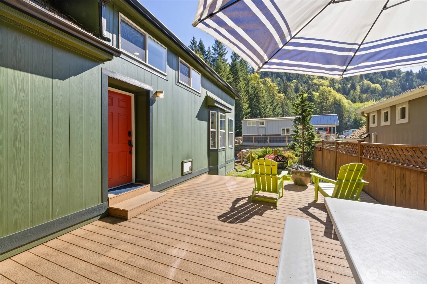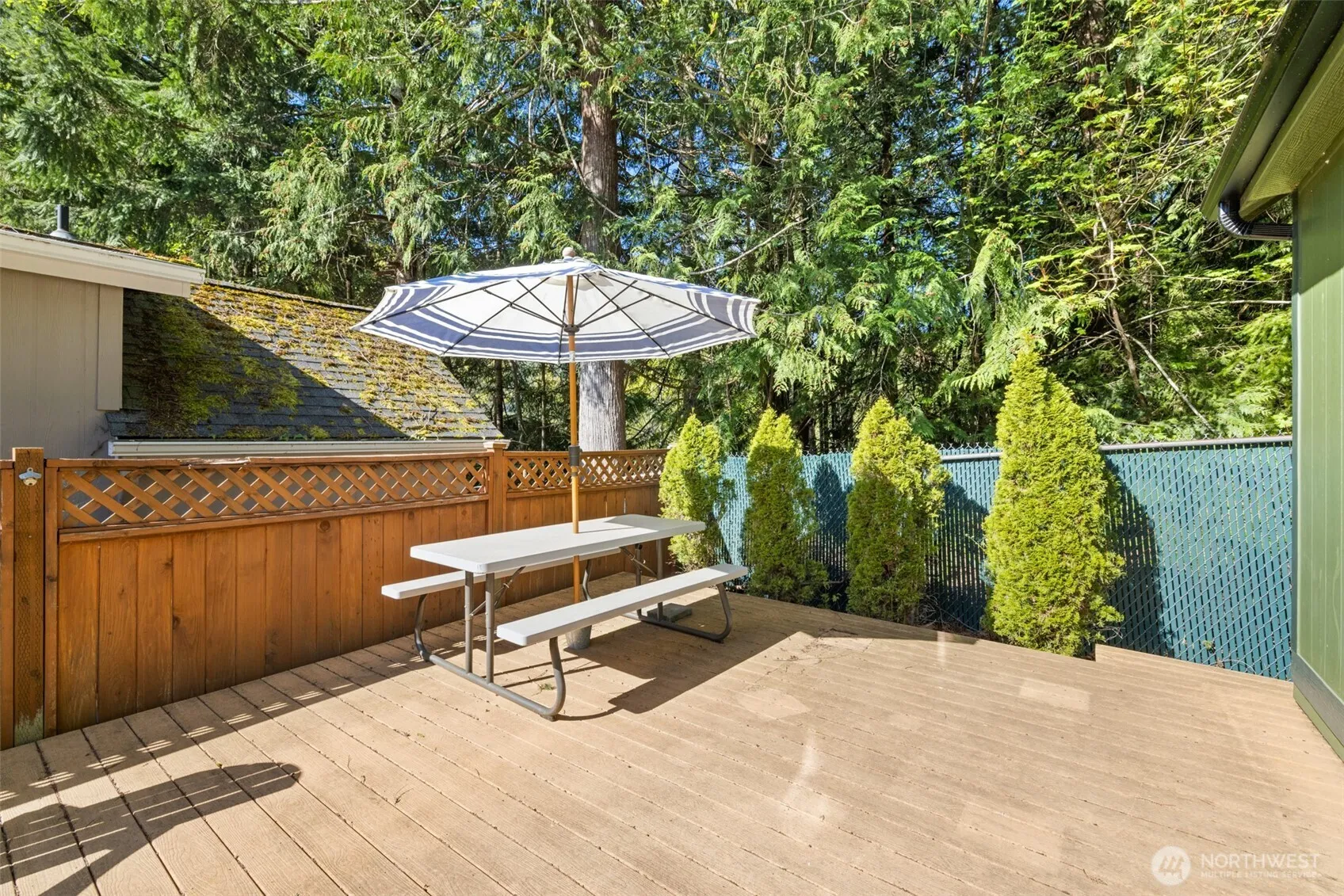 Welcome to the gated Maple Grove community on beautiful Lake Sutherland, where recreation and relaxation meet. Enjoy access to a private community dock, boat launch and dedicated slip #49, swimming area, slide, expansive grassy spaces, and ample parking, all just a short walk from your door. This thoughtfully designed tiny home sits on its own lot and offers modern finishes with a highly functional layout. Features include a vaulted ceiling, kitchen peninsula with stainless appliances, vinyl flooring, and a main-level bedroom with adjacent laundry and bathroom with walk-in shower. A versatile loft provides additional sleeping or hangout space. Outside, enjoy a partially fenced yard, composite deck, and firepit, perfect for entertaining or unwinding after a day on the lake. Located on a paved, low-traffic loop for added ease and safety, and just minutes from Highway 101 for convenient access to endless outdoor recreation. A turnkey getaway or full-time retreat in a sought-after lakeside community.