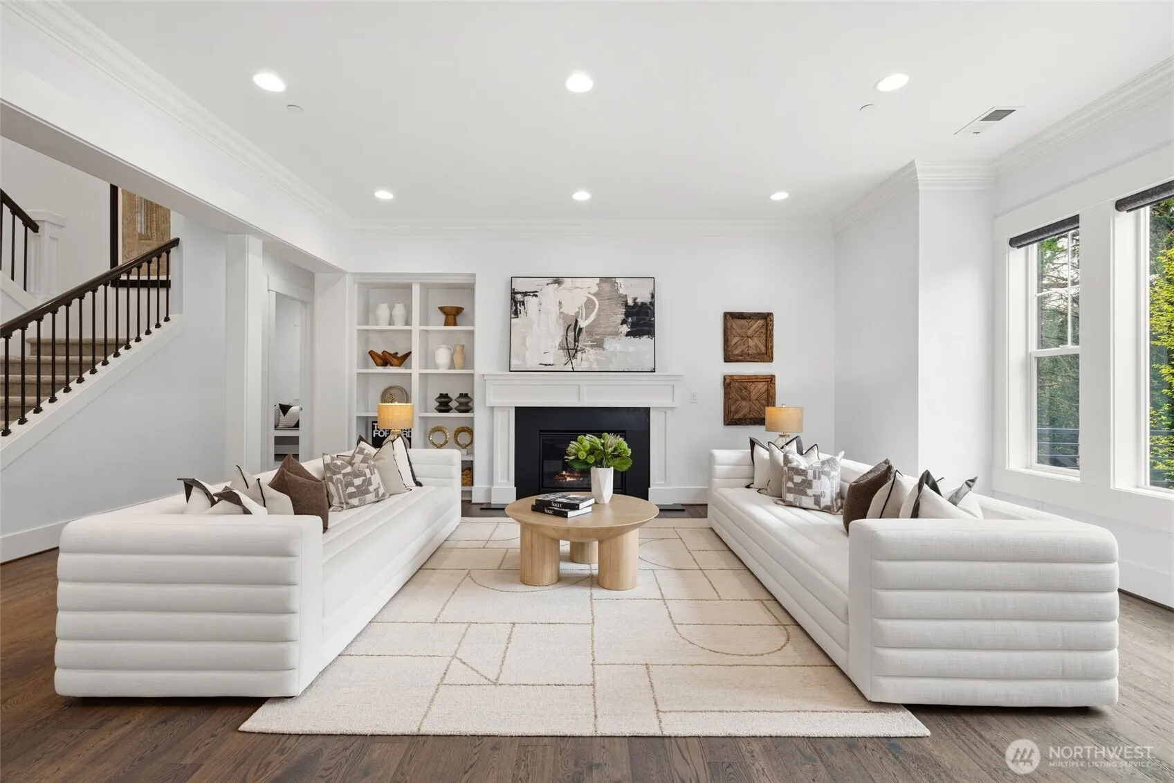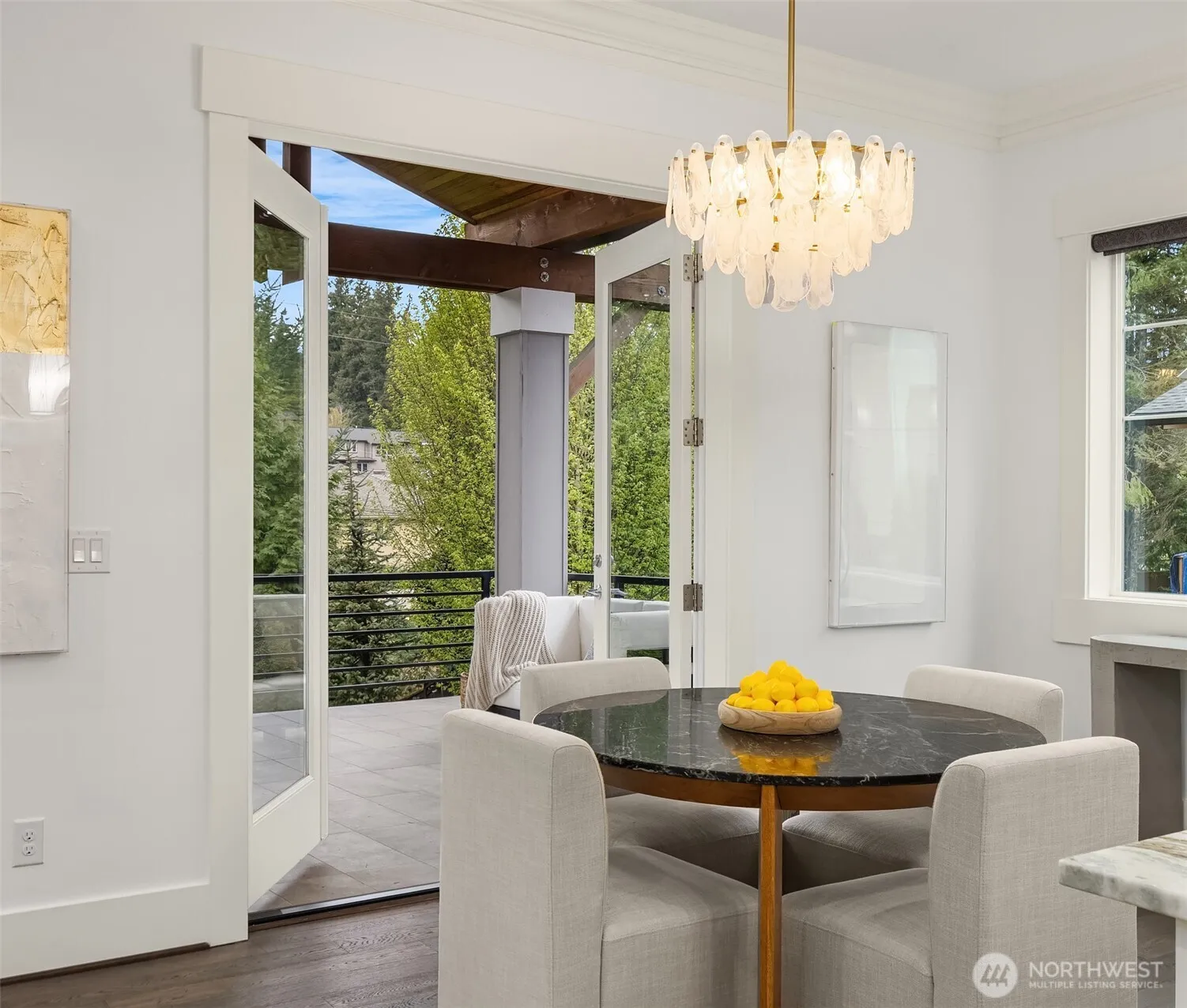 Exceptional JayMarc resale showcasing timeless craftsmanship and a thoughtful layout. Set on a private dead-end street just minutes from Downtown Bellevue’s premier dining, shopping, and amenities, this home offers both privacy and convenience. Designed for entertaining, the open great room flows to a large covered deck through French doors, creating effortless indoor-outdoor living. The chef’s kitchen features top-tier Sub-Zero and Wolf appliances, a butler’s pantry, and a casual dining area. An ocean wave–inspired natural stone island with a leathered finish serves as a one-of-a-kind centerpiece. Upstairs includes four spacious bedrooms and three baths, highlighted by a luxurious primary suite with a sitting area, a generously sized spa-like bath, and a walk-in closet, all framed by vaulted ceilings and bright, airy interiors. The refined lower level features a spacious rec room that opens to a flat, west-facing backyard, along with a private guest space and separate entrance—ideal for visitors or multigenerational living. Lush, mature landscaping is complemented by a full irrigation system and fully fenced grounds. Fresh interior paint enhances the home’s crisp, move-in-ready appeal. Additional highlights include a three-car garage with EV charging and dual-zone heating and cooling for year-round comfort. Ideally located just a short stroll from the Bellevue Farmers Market.