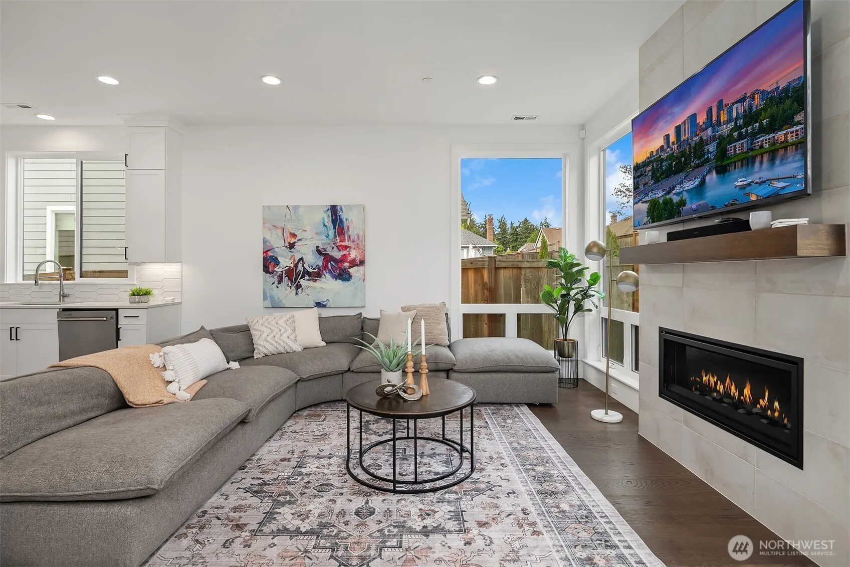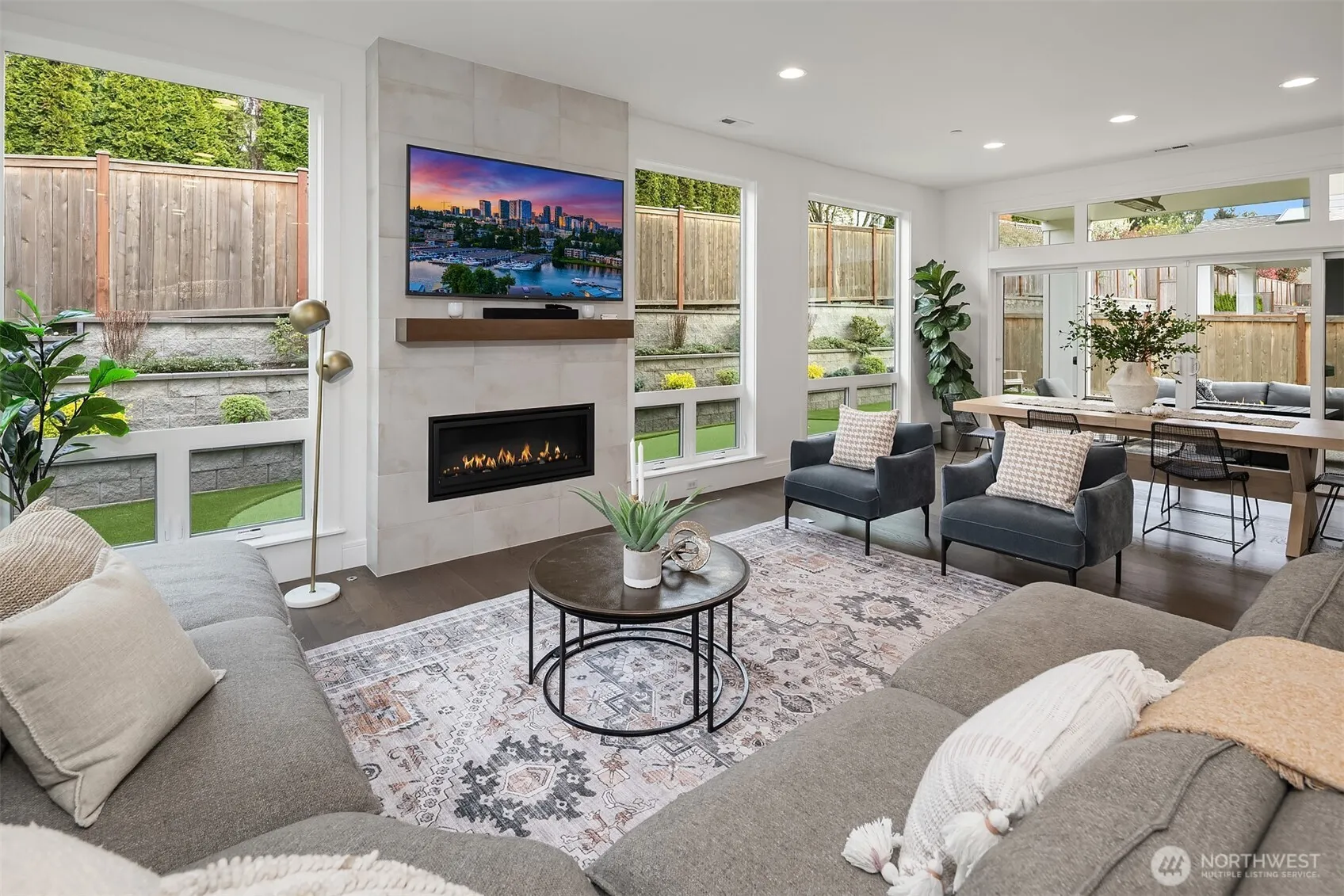 Nestled among a collection of elegant homes, this beautifully designed residence offers exceptional quality, comfort, and style. The main floor showcases soaring 10-foot ceilings and expansive windows that fill the home with natural light, creating a bright and inviting atmosphere. The chef’s kitchen is a true centerpiece, featuring quartz countertops, ample cabinetry, premium KitchenAid appliances, a 6-burner gas stove, double oven, and a generously sized walk-in pantry—perfect for both everyday living and entertaining. The open-concept living area is warm and welcoming, highlighted by a gas log fireplace and seamless access to a covered patio with overhead heating—ideal for year-round outdoor enjoyment. A main floor bedroom with an adjacent bath provides excellent flexibility for guests or multi-generational living. Upstairs, the spacious primary suite offers a luxurious retreat with a spa-inspired bathroom, including a standalone soaking tub, walk-in shower, skylight, vaulted ceiling, and an expansive walk-in closet. Three additional bedrooms each offer their own unique character and charm, while a versatile bonus room provides endless possibilities for a media room, playroom, or home gym. Step outside to a fully fenced backyard designed for low maintenance and relaxation, featuring artificial turf, landscaped privacy, and your very own putting green. Additional highlights include a fully finished drywall garage and a location that combines privacy with convenience.