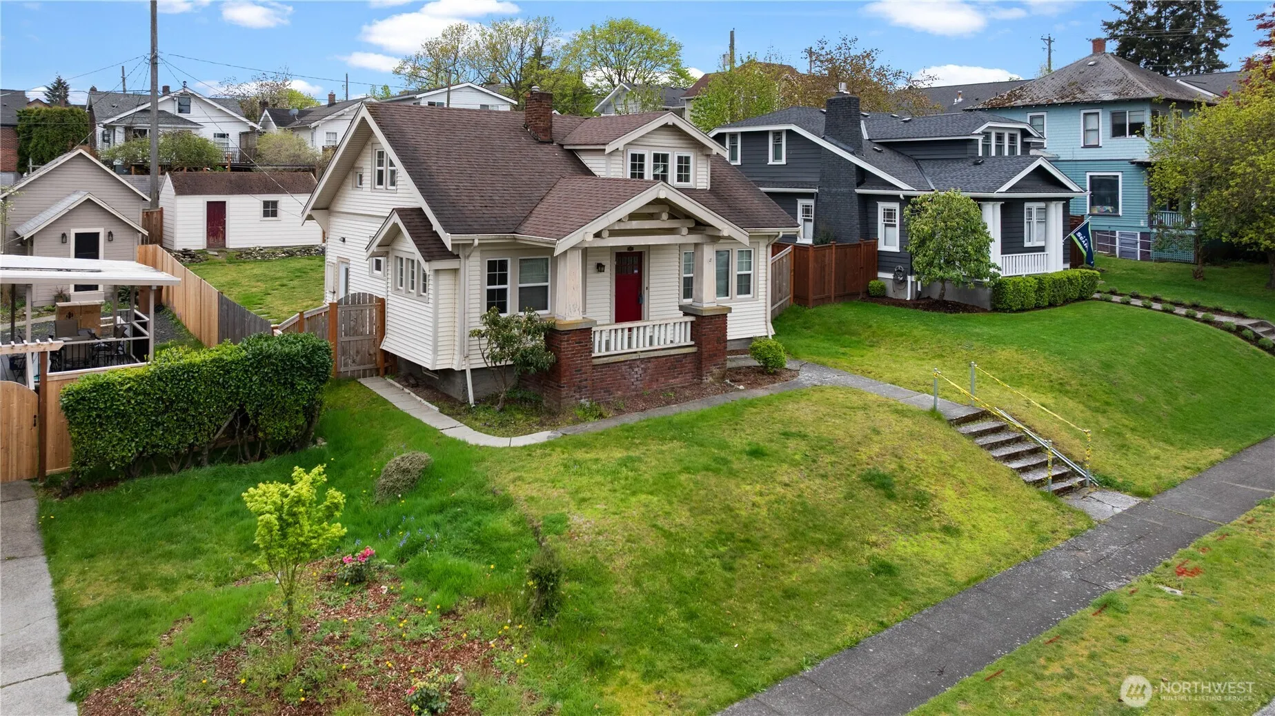 A Proctor area darling house brimming with timeless 1922 character! Located on highly sought-after N 30th Street, this vintage 3-bedroom classic is an absolute dream for those wanting to curate their own masterpiece in Tacoma’s premier neighborhood. You are welcomed by a living room with tons of natural light through picture windows facing N 30th Street, a main level bedroom and a wonderful floor plan all awaiting your personal touch. Upstairs, you will find original hardwood floors and a very special peek-a-boo view of the water from the bedroom window! Modern peace of mind is already covered with newer windows. Outside features a great fenced yard, a detached one-car garage, and highly coveted alley access. Bring your vision to this untouched vintage beauty and live just moments from Proctor’s best shops and dining!