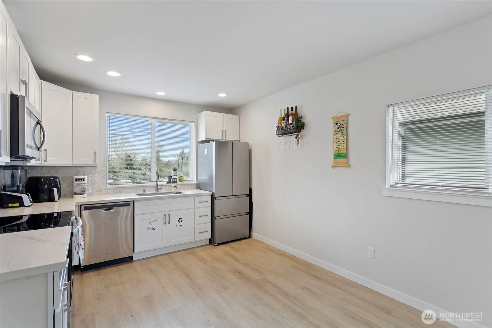 Welcome to this beautifully renovated two-story home offering 4 bedrooms and 2 bathrooms, thoughtfully updated for modern living. The light-filled open kitchen features sleek quartz countertops, stylish light-toned laminate flooring, and brand-new stainless steel appliances—perfect for both everyday living and entertaining. The spacious layout offers comfort and functionality throughout. Ideally located near shopping, dining, and major freeways, this home combines accessibility with the charm of a welcoming neighborhood. Situated on a generous lot, the property offers added privacy with a spacious backyard—perfect for relaxing, entertaining, or future possibilities.
