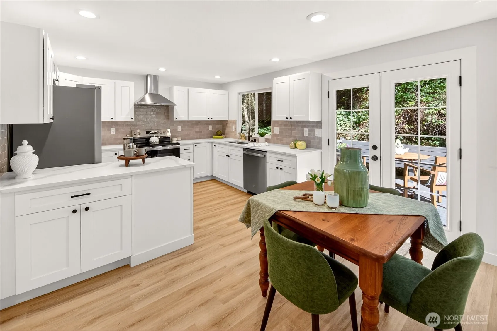 Rare opportunity to own a stunning home in one of Lynnwood’s last wooded settings, offering privacy and Pacific Northwest beauty. Exquisitely reimagined from the studs out (including all systems), this 3+Bedroom (4th bedroom potential), 1.75 bath residence is set on a shy 3/4 acre parcel enveloped by tranquil, wooded surroundings. A charming country porch introduces a refined interior defined by elevated craftsmanship and thoughtfully curated finishes. The dramatic living room showcases soaring vaulted ceilings and a fireplace adorned with a custom solid wood mantel. The chef’s kitchen is appointed with wonderful finishes, expansive prep space, and a generous dining area, with French doors opening to a secluded deck and fire pit for effortless indoor-outdoor living. The upper-level primary suite offers a spa-inspired bath, walk-in closet, and intimate sitting nook. An open loft with upper-level laundry provides flexibility, while the impressive 400 sqft bonus room with exposed beam vaulted ceilings is ideal as a theater, game or secondary suite room. A 110 sqft outbuilding adds versatility for studio, crafts, or office. Complete with a 2 car garage and proximity to premier amenities. This is truly a special place to call home!