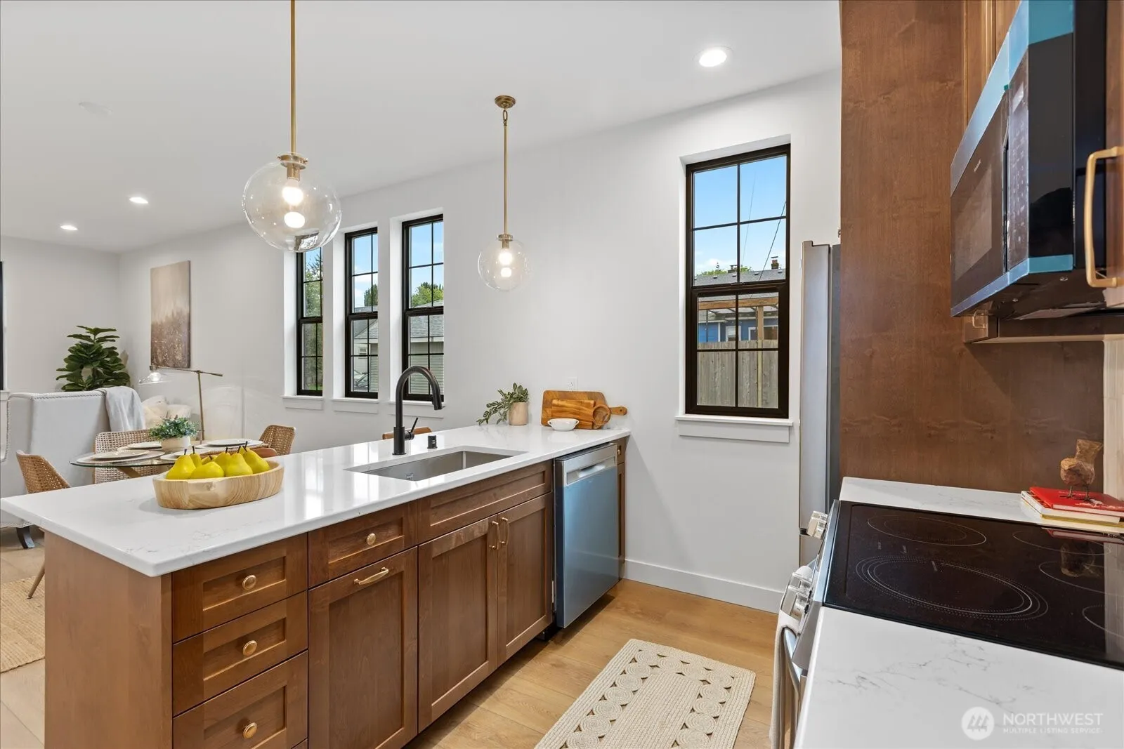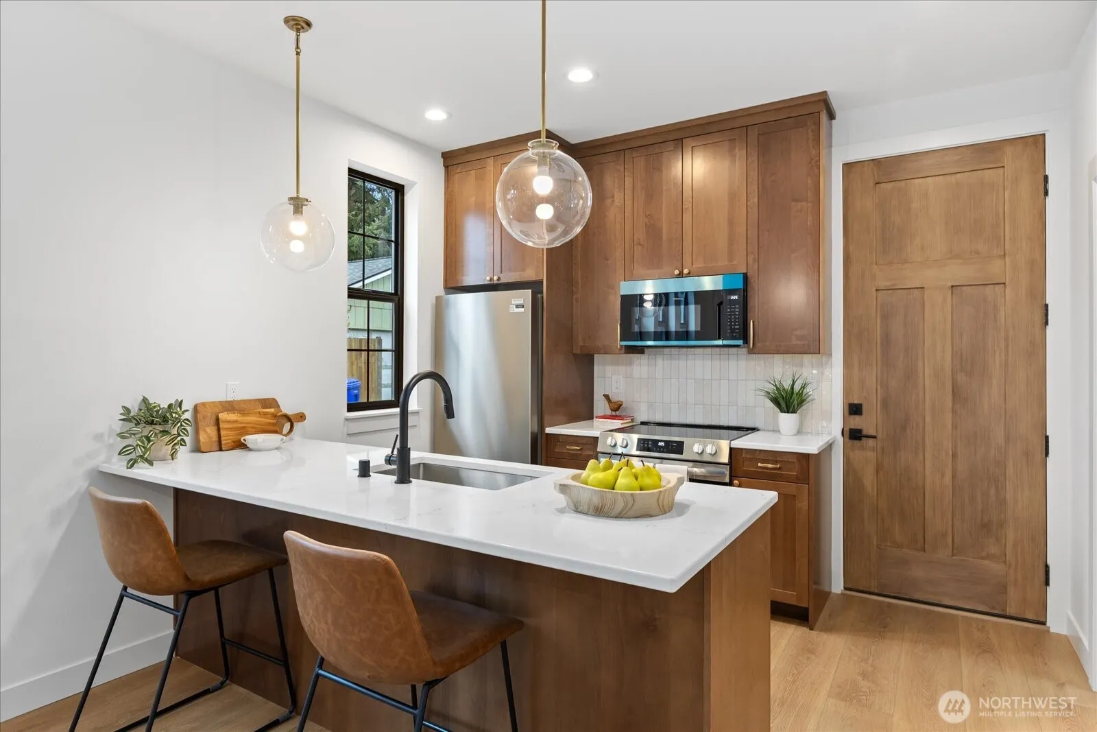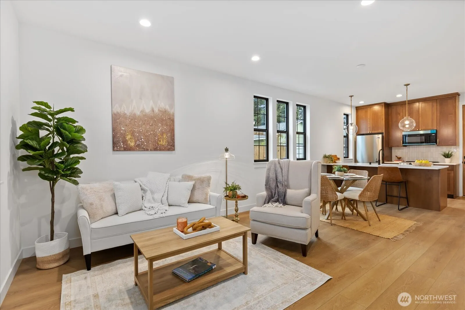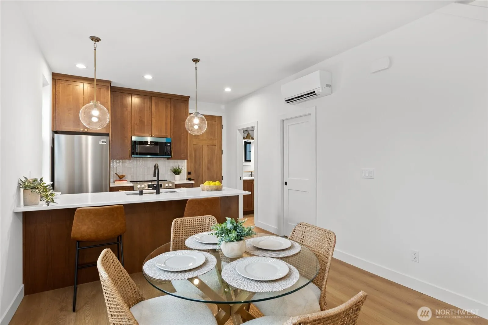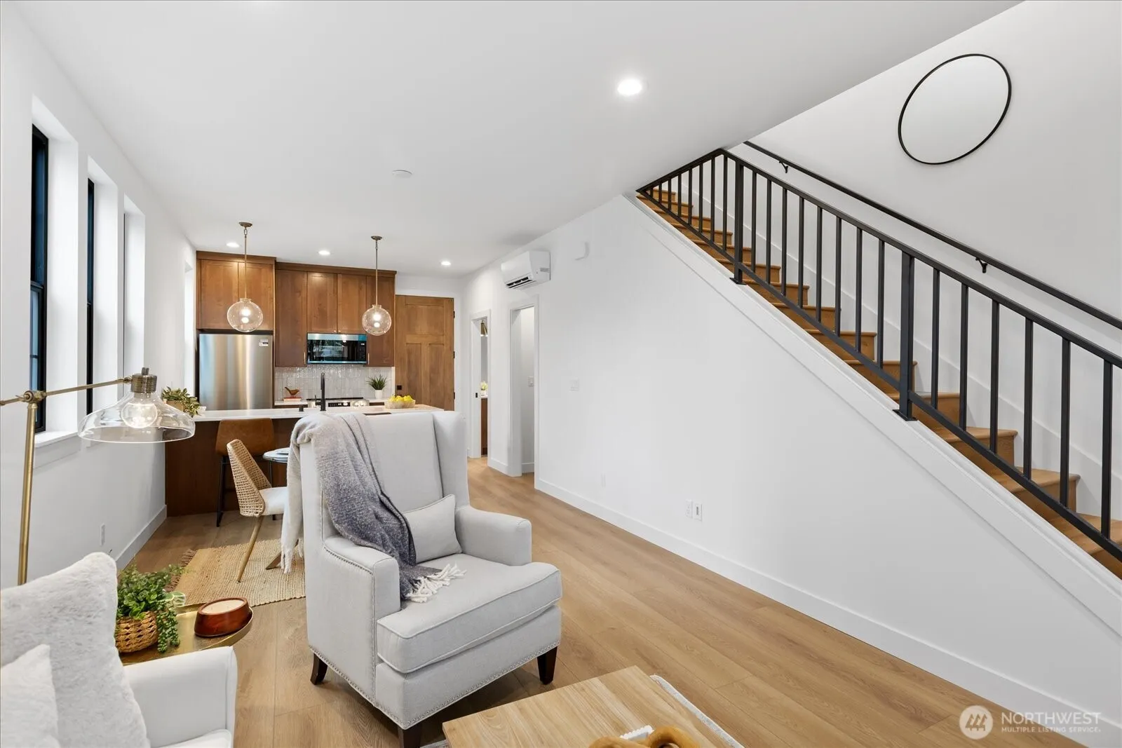 Brand new construction offering modern style and thoughtful design! This 2 bed, 1.5 bath two-story home features an open-concept layout with seamless flow between the living, dining, and kitchen spaces—perfect for everyday living and entertaining. High ceilings and tall doors create a modern and posh ambiance. The beautifully appointed kitchen showcases quartz countertops, stylish cabinetry, counter seating, stainless steel appliances and a walk-in pantry! Classy and durable LVP flooring runs throughout the whole home and great natural light fills all the rooms. Upstairs you’ll find both bedrooms along with a convenient Jack-and-Jill bath that features designer tile finishes and sophisticated fixtures for a refined touch. An upstairs laundry space and deep under-stair storage adds functionality and flexibility. Mini split AC units throughout the home! Ideally located with easy access to I-5 and Highway 2, and just minutes from the Everett waterfront, shopping, dining, and entertainment. A perfect blend of comfort, convenience, and contemporary living! Qualified buyers can get a 4.99% rate on this specific home!