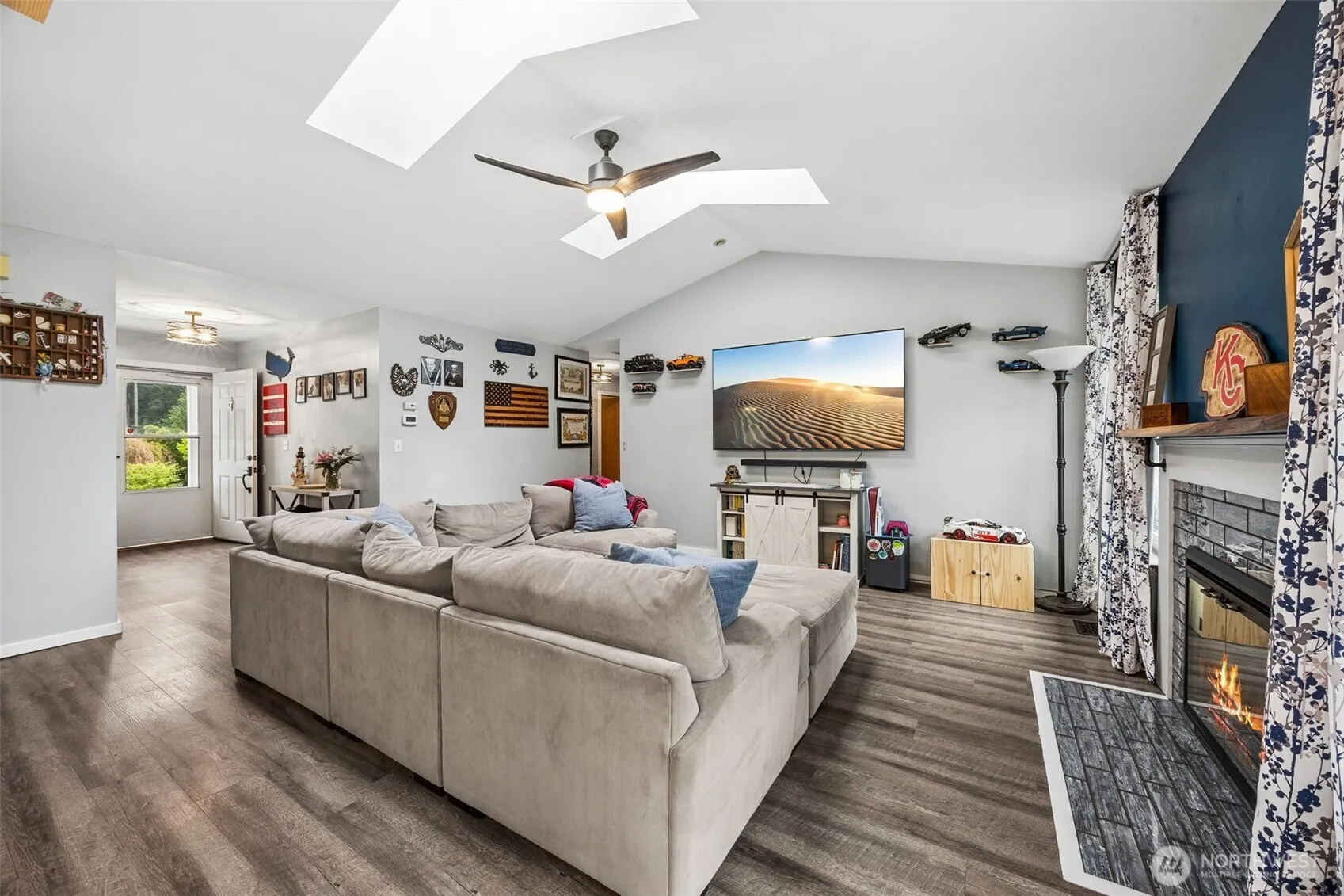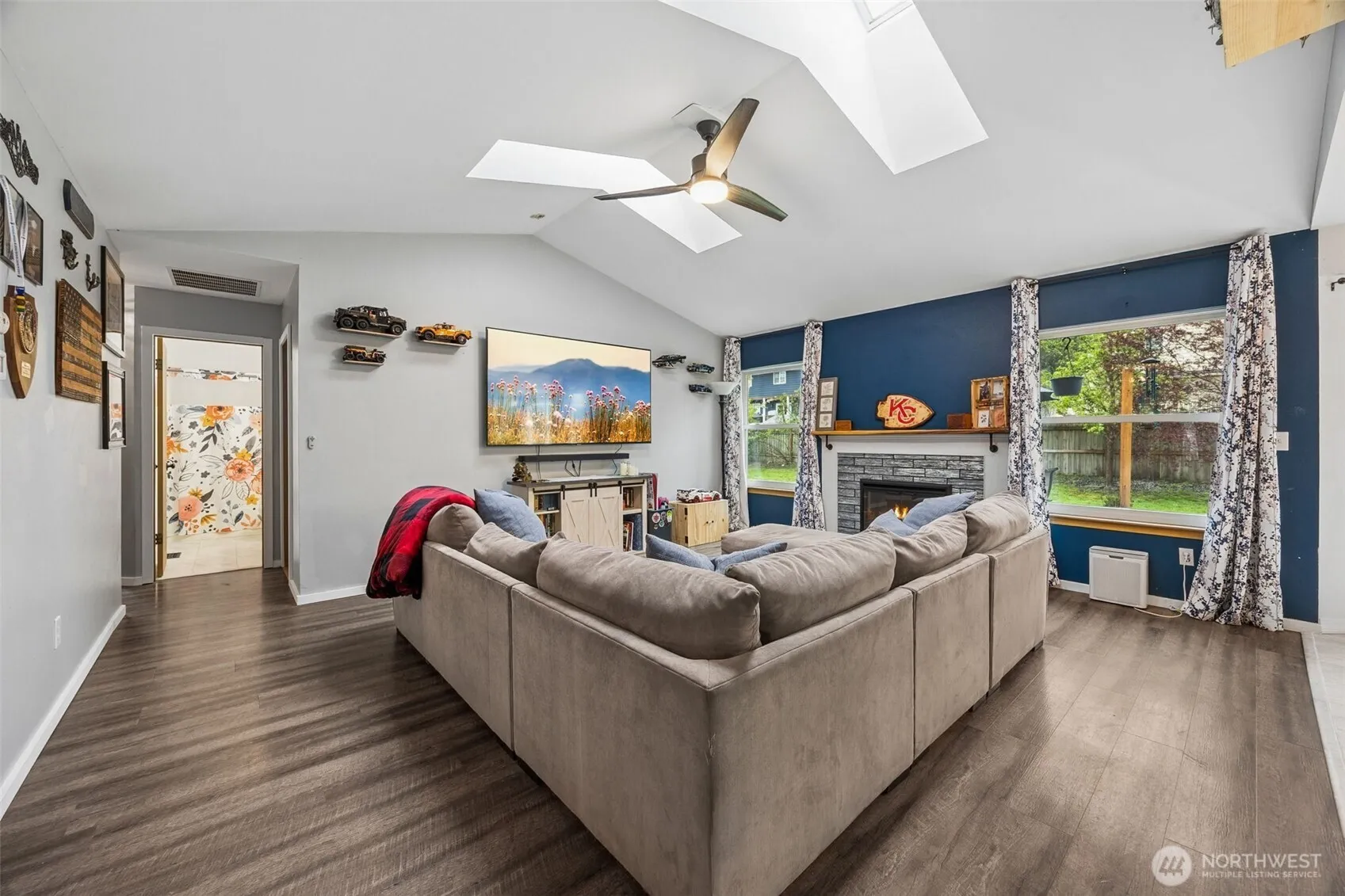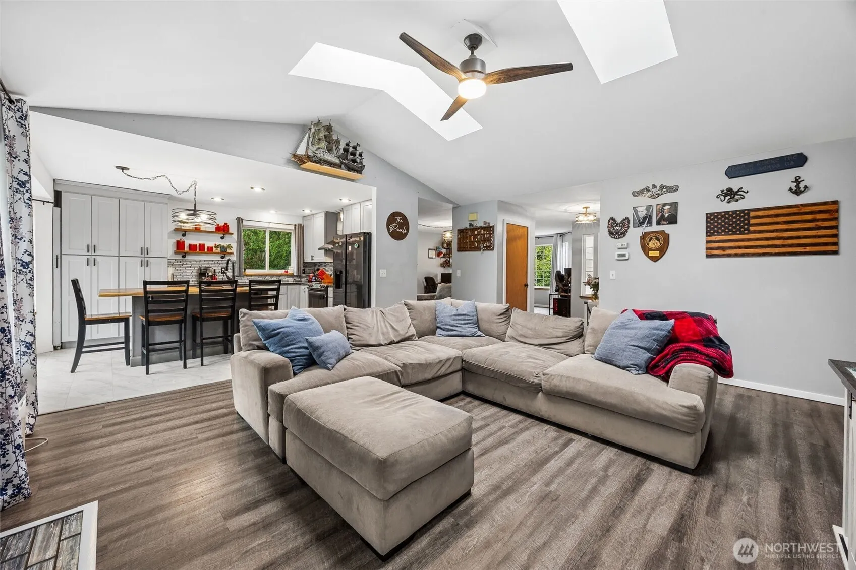 Lovely 3-bedroom, 2-bathroom rambler is set on a 0.29-acre lot in Bremerton. Featuring vaulted ceilings with skylights, formal living and dining rooms, and a cozy family room with a fireplace. The open kitchen includes a pantry, an island with a breakfast bar, a dining area, and access to the backyard. The primary bedroom has an ensuite bathroom and a walk-in closet, along with two additional bedrooms and a full bathroom. Enjoy the fenced yard and a 2-car garage. Centrally located with easy access to Highway 303, bases, restaurants, shopping, parks, and more!