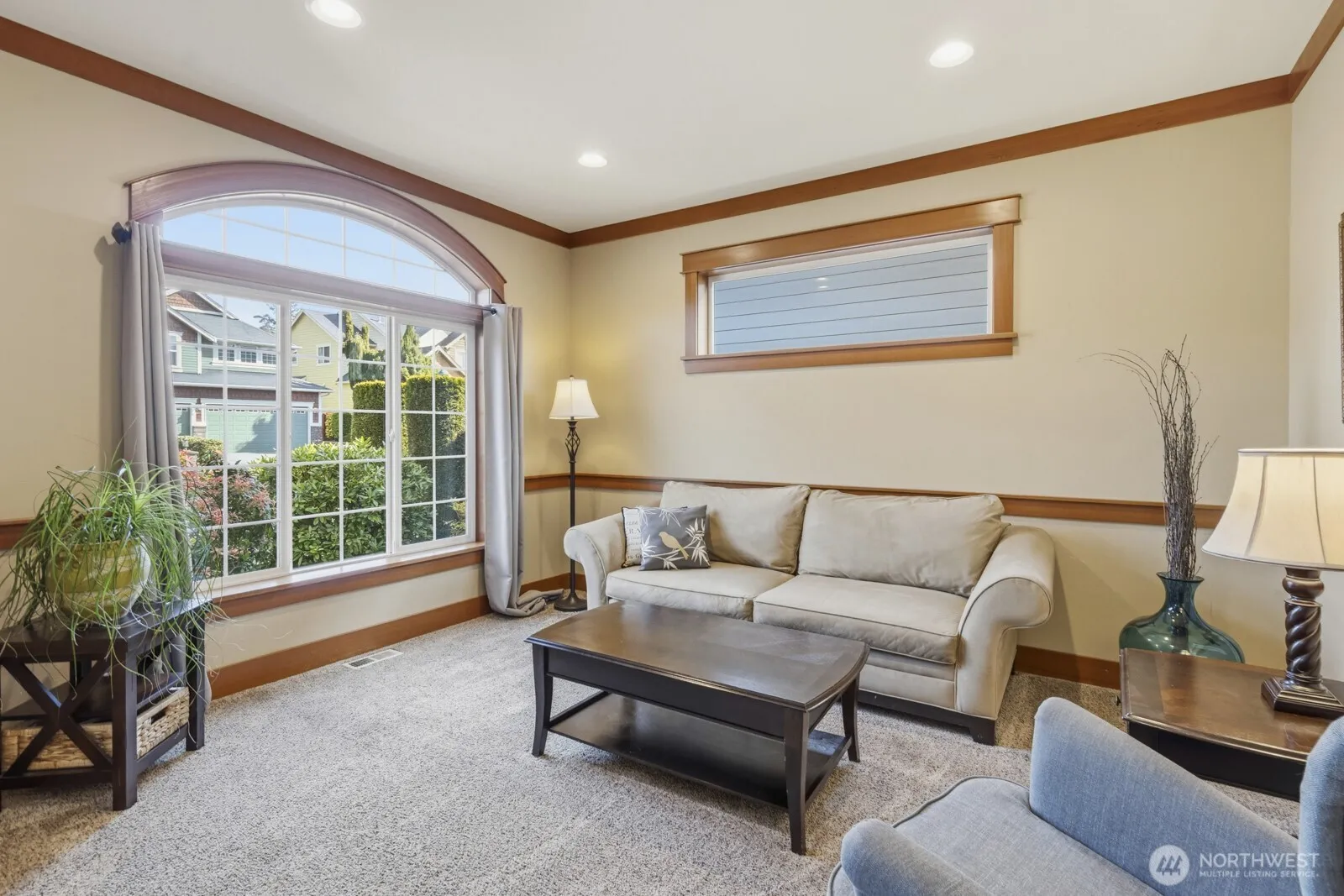 Calvert Ridge, one of Puyallup’s most exquisite & close-knit neighborhoods, proudly presents this gorgeous 4-bedroom home to market. Quietly tucked away at the end of the street, this exceptional property offers privacy while remaining just minutes from the mall, restaurants, hotels, park & ride with direct bus to Sounder Train, schools & the fairgrounds. Inside, you’ll discover quality craftsmanship throughout with rich wood floors, elegant millwork, beautifully wood-wrapped windows & A/C. The open-concept design showcases an expansive kitchen with an entertaining bar, new refrigerator & dishwasher, seamlessly flowing into the dining area and inviting family room—perfect for gathering & everyday living. Additional highlights include a stunning custom wood-built entertainment center, cozy fireplace, and formal living & dining rooms. Upstairs, enjoy a spacious bonus room & convenient laundry area, along with 4 generously sized bedrooms including a luxury primary suite. Step outside to a private patio, raised garden beds, and a meticulously maintained, beautifully landscaped yard complete with sprinklers. A rare roll-up back garage door adds convenience & functionality. Oversized 4-car tandem garage offering generous depth for vehicles, storage, or hobbies. Brand new roof 2026. New crawlspace insulation & vapor barrier. Wired CAT 5/3. Smaller neighborhood with HOA park, featuring a no-thru street with low traffic. This impressive home truly has it all—come see it today!