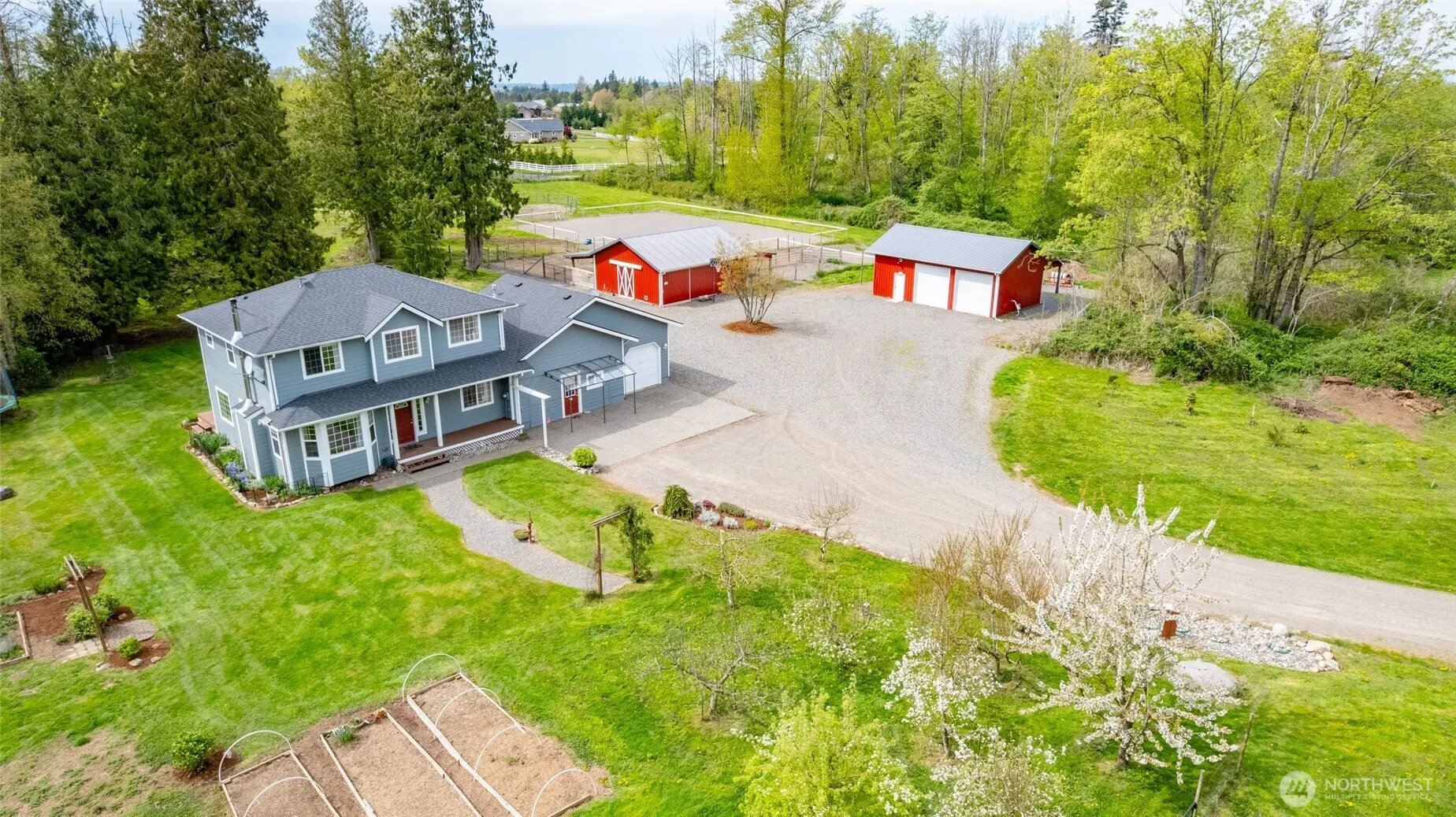 This exceptional property has so much to offer! Tucked down a quiet, private road on nearly 5 acres with Mount Baker views, this fully fenced property with a gated entrance provides the perfect blend of privacy, functionality, and scenic beauty. Ideal for horse enthusiasts or those seeking a mini-farm lifestyle, the equestrian setup features a spacious 7,500 sq ft outdoor arena—perfect for riding, training, or simply enjoying the peaceful surroundings. The property also includes multiple exterior stalls with runs, a tack room, and inside stalls. In addition to the equestrian amenities, a large two-car shop offers excellent space for projects, storage, or equipment. The main home is well-appointed with 3 bedrooms plus office and 3 bathrooms, offering comfortable living with room to spread out. An attached 1-bedroom 1- bathroom mother-in-law suite with its own separate entrance & garage provides flexibility for guests, multi-generational living, or potential rental income.