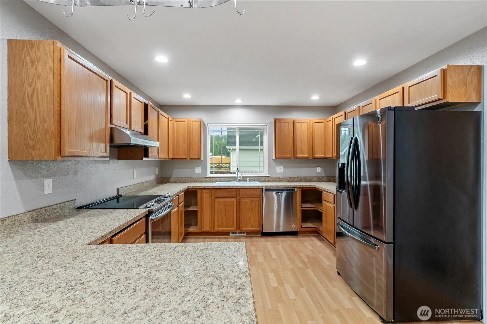 Natural light, comfortable proportions, and a layout that supports everyday living. From the moment you enter, the home feels bright and inviting, with generously sized rooms that offer flexibility for a variety of needs. The main living areas flow easily together, creating a space that works well for both daily routines and gathering. The kitchen offers abundant cabinet storage and ample counter space, providing function without compromise. A spacious family room adds an additional living area, while the large back deck extends the home outdoors, creating a natural place to relax or entertain. The main level features a primary bedroom with a full bath, along with an additional half bath for convenience. Upstairs, two bedrooms and a full bath provide separation and flexibility for guests or household members. Located close to town and schools, the setting adds ease to day-to-day living while keeping you connected to nearby amenities.
