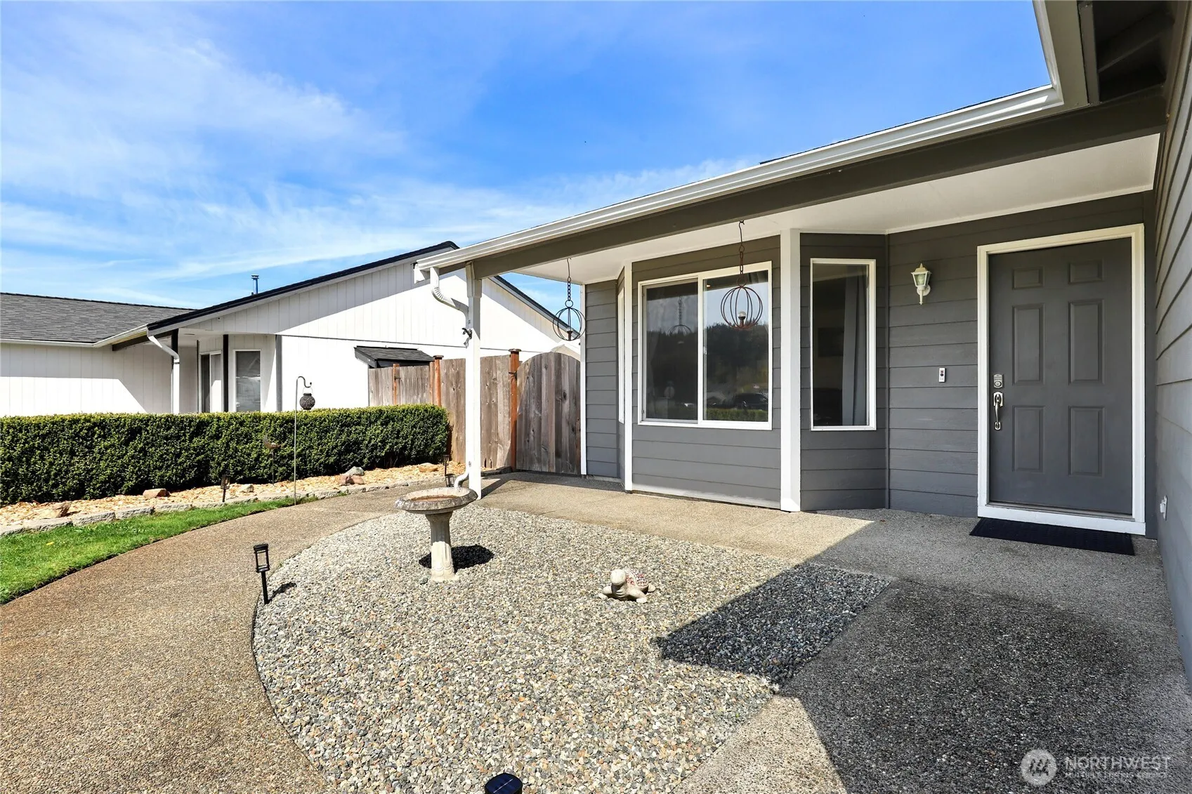 Enjoy the ease and convenience of single-level living in this exceptional rambler! This beautifully maintained home offers comfort, style, and stunning surroundings. Thoughtfully designed with low-maintenance landscaping, the curb appeal is truly exceptional. Inside, you’ll find 3 well-appointed bedrooms and 1.75 newly tiled baths, along with an oversized 2-car garage for added convenience. The cozy living room features a charming bay window that fills the space with natural light, creating a warm and inviting atmosphere. The spacious island kitchen is perfect for gathering and everyday living, complete with engineered hardwoods, carpeted rooms, and the added bonus of all major appliances included. Step outside to an extra-large patio designed for entertaining or relaxing while overlooking the fully fenced backyard. Enjoy ample space for outdoor activities, along with a fantastic campfire area ideal for memorable evenings. To top it all off, take in the breathtaking views of Mt. Rainier from your own property. Conveniently located near a golf course and with no HOA dues, this home blends comfort, functionality, and scenic beauty, ready to welcome its next chapter.