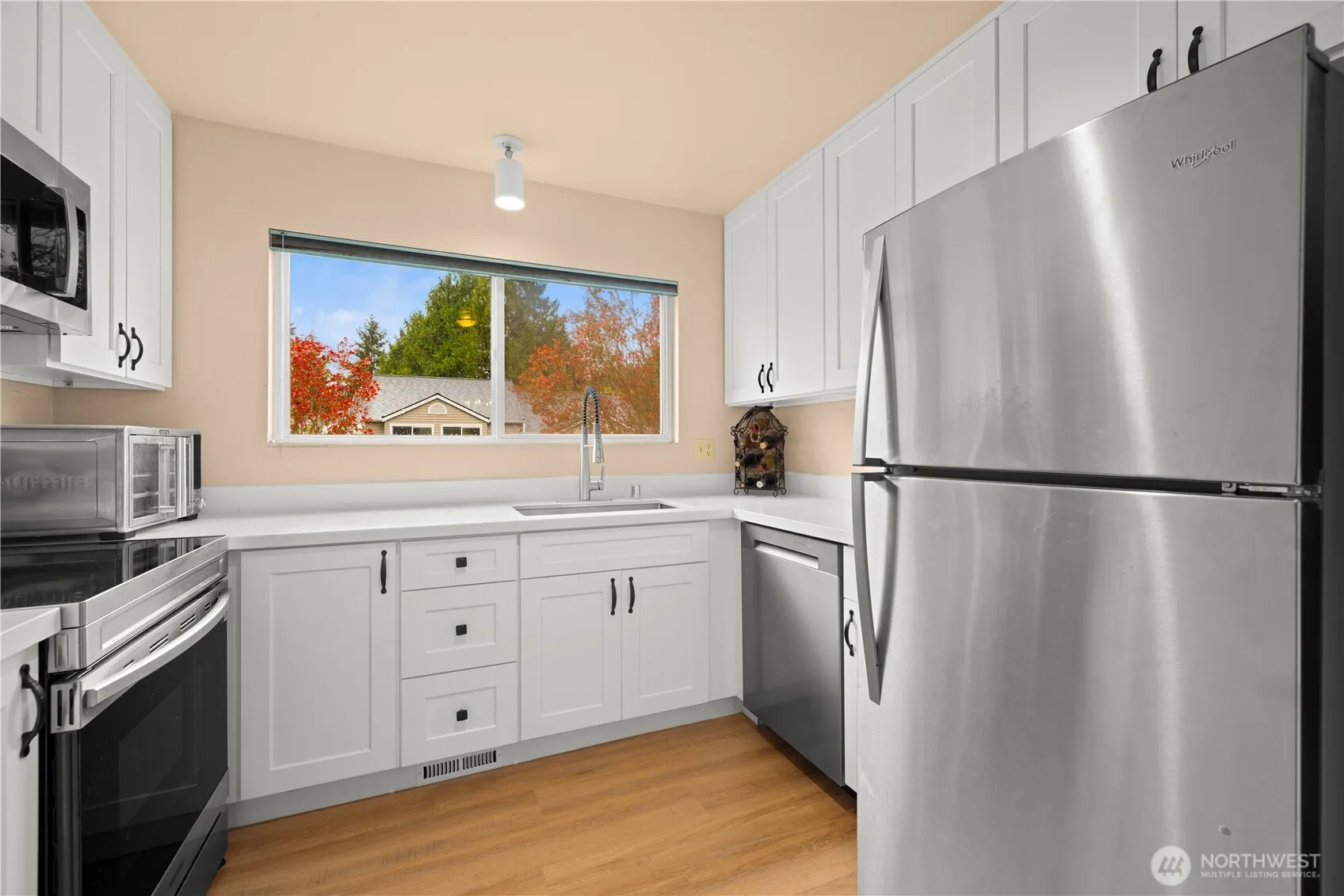 Come live the Juanita lifestyle. Walk to Juanita Beach Park on Lake Washington, where you’ll find a sandy swimming beach, kayak and paddleboard rentals, a playground, picnic areas, and a scenic boardwalk loop. Summer friday evenings enjoy the Juanita Friday Market draws local vendors right on the lake’s edge fresh produce, flowers, hot prepared foods, handmade crafts, and live music making it one of the Eastside’s most beloved community traditions. Juanita Village, just steps away, is a walkable mixed-use hub filled with shops, restaurants, and cafes for every taste. The Village at Totem Lake, a reimagined outdoor destination featuring a luxury cinema, Salt & Straw ice cream, Serious Pie, and more is just minutes away. For commuters, it’s hard to beat. Walking distance to transit, easy I-405 access puts Redmond, Bellevue, and Seattle within comfortable reach. All of this comes with a thoughtfully updated townhome that is truly move-in ready from the moment you walk in. Fresh paint throughout gives the home a bright, clean feel, while new carpet adds warmth and comfort underfoot. Spacious bedrooms, a Jack and Jill bathroom, an updated kitchen, and a refreshed bathroom mean there is nothing left to do but move in and enjoy. Step outside to your private patio, a perfect spot for morning coffee, evening unwinding, or entertaining friends on a warm Eastside summer night. Come and own in one of Kirkland’s most sought after neighborhoods is Waiting just for you.