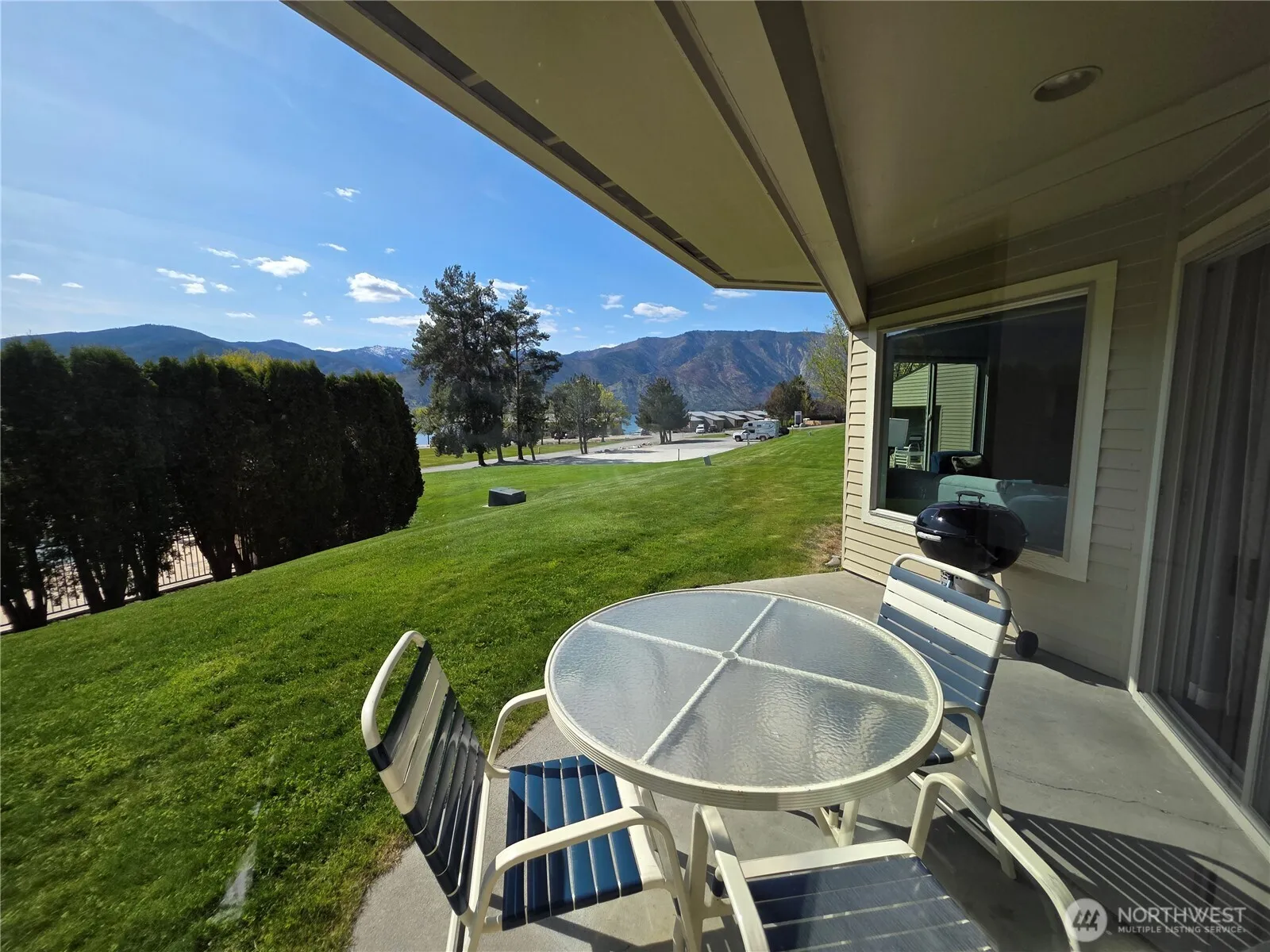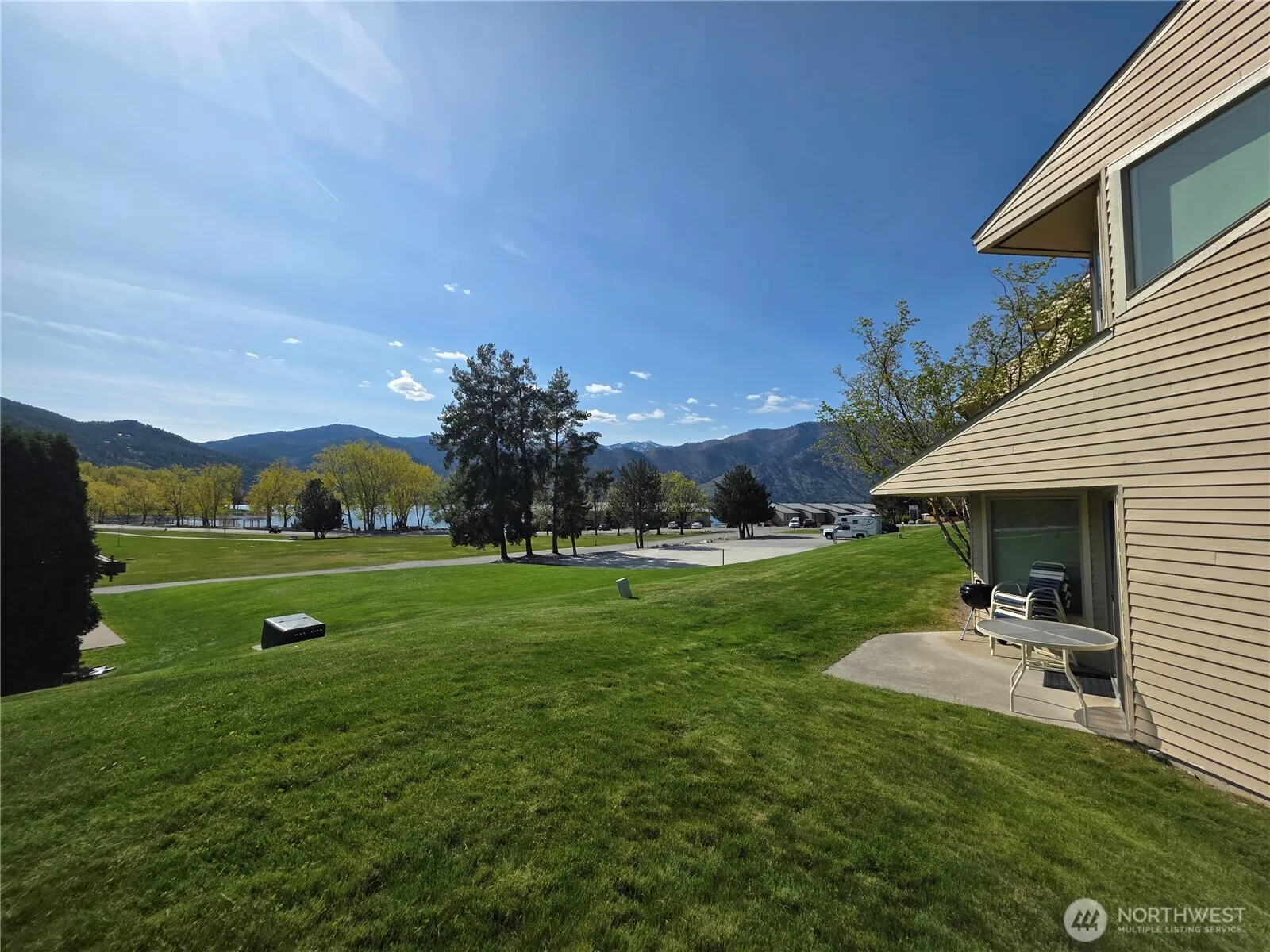 Newly REMODELED with high end finishes! Ground Floor CORNER 2 Bedroom 2 Bath fully equipped condo. Buy NOW & use August 7-14 & December 4-11 in 2026. January 1-8, May 14-21 & September 10-17 in 2027. February 11-18, June 9-16 & October 6-13 in 2028. Only 5 units in this building gives you a great feeling of privacy. Beautiful lake & mountain views & spacious lawn areas from your private patio. Outdoor pool only steps from the condo. Located next to indoor pool, hot tub, exercise facility & just across the lawn are world class resort amenities: boat moorage, sandy beach waterfront, mini-golf, children’s activity center, watercraft rentals, basketball, volleyball and more. Less than 1 block to community sandy beach & tennis/pickleball courts. Affordable HOA Fees $876 per quarter (includes remodel cost). 3 rotating weeks every year on a Friday to Friday rotation. Enjoy all seasons the Lake Chelan Valley has to offer. Use your weeks, rent for income or trade thru RCI & visit other places. Less than 2 blocks to downtown Manson shopping, restaurants, wineries, coffee shops, bakeries, grocery store & night life. One of Washington State’s most desired vacation spots. 116 Acres of FUN for ALL Ages!