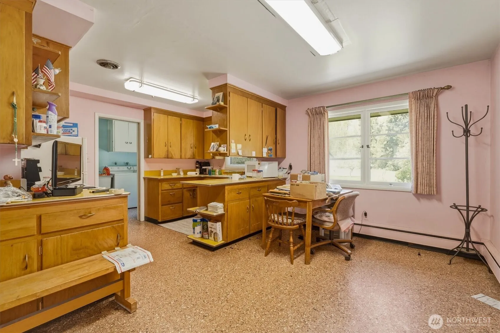 Great Investment Possibility. City of Longview confirmed that the lot could be split into 2 additional building lots. Solidly built mid century home. Original family that built it /still owns it. This home has been well maintained and still has all of it’s original finishes. 2 spacious bedrooms with closets and built in drawers. The large living room has wonderful picture windows and a wood burning fireplace. The kitchen has a larger counter for food prep and gathering for meals. All appliances on site stay including washer/dryer, stove and fridge. Dining room and a built in secretary or/ hall phone station to take you back to the by gone era. This home sits on 1.7 acres with a small garden shed, garden area, grapes, fruit trees, carport and a shared paved driveway with 2 other homes. The lot runs all the way back to the train tracks. Tracks are no longer in service. Buyer to verify to their own satisfaction.