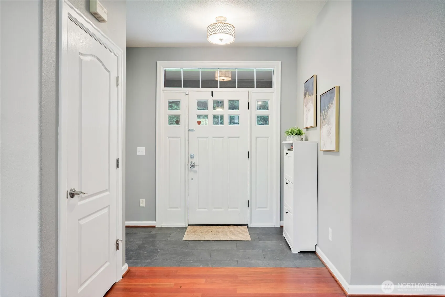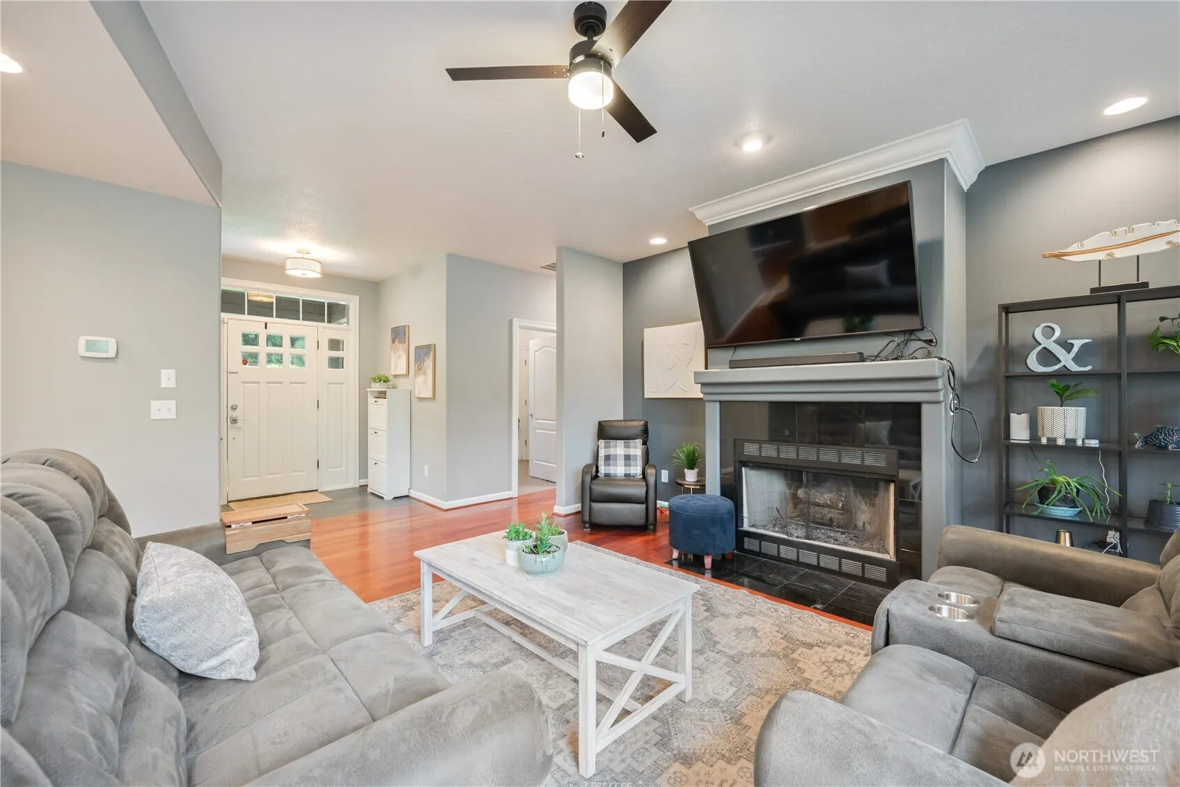 Beautiful, grand and spacious four-bedroom, 2.5-bath home featuring generous room sizes and expansive picture windows that fill the home with natural light. The main level offers 9-foot ceilings and an open-concept floor plan designed for comfortable living and entertaining. The living room showcases a cozy fireplace and direct access to a covered deck—perfect for year-round enjoyment. The large kitchen is well-appointed with stainless steel appliances, granite countertops and a central island ideal for gathering. The vaulted dining area is bright and inviting, enhanced by abundant windows. The primary suite is conveniently located on the main level and features two walk-in closets and a private en suite bath with double vanities, a soaking tub and serene views of the private, tree-lined backyard. The daylight basement boasts of tall ceilings, a spacious bonus room, three additional bedrooms and a full bath—offering excellent potential for multigenerational living or guest accommodations, along with ample storage. Outside, you’ll find a private backyard with mature trees, a charming chicken coop and two large covered decks that create an ideal setting for outdoor living and entertaining. Truly a beautiful home—schedule your private tour today!