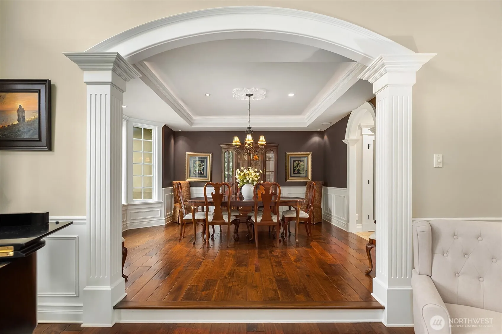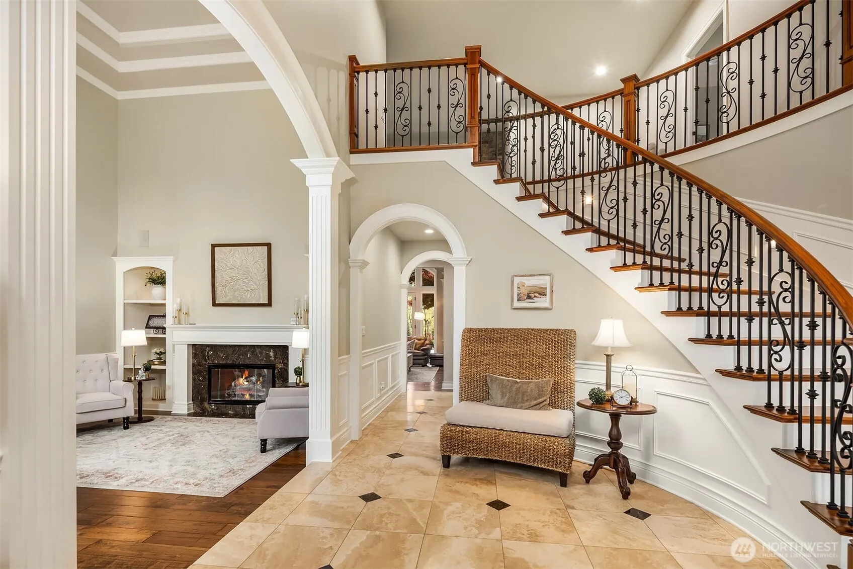 Magnificent 6,900 sq ft estate on 4.5 pristine acres within Cornerstone, Maple Valley’s most exclusive gated community. This exceptional home blends refined craftsmanship with resort-style living. Grand two-story foyer with circular wrought-iron staircase, heated travertine floors, extensive millwork, and formal living spaces set an elevated tone.Prepare gourmet meals in your recently remodeled kitchen featuring white cabinetry, 6 burner stove & large quartzite island while enjoying the thoughtful elements including built-in ice maker, butler’s pantry & appliance garage. Enjoy the dining & living room areas w/ floor to ceiling windows overlooking your truly special backyard oasis: This resort-style space w/swimming pool, hot tub, multiple entertaining patios, covered outdoor kitchen w/wood-burning fireplace, manicured putting green, and versatile sport court. After a day of play, retreat each evening to the main-floor primary suite w/a private patio, gas fireplace with carved stone mantle, then unwind in your spa ensuite bath w/ walk-in shower, and 2-person soaking tub. Upstairs, find a large bonus room, & 3 oversized bedrooms, each offering walk-in closets & ensuite bathrooms. Entertainment continues downstairs w/ cinema room featuring built-in reclining seats & projection screen! Lower level offers more living space, or possible ADU w/separate entrance, full kitchen, & built in storage. 3-car garage, circular driveway, whole house generator, AC & Tahoma Schools!