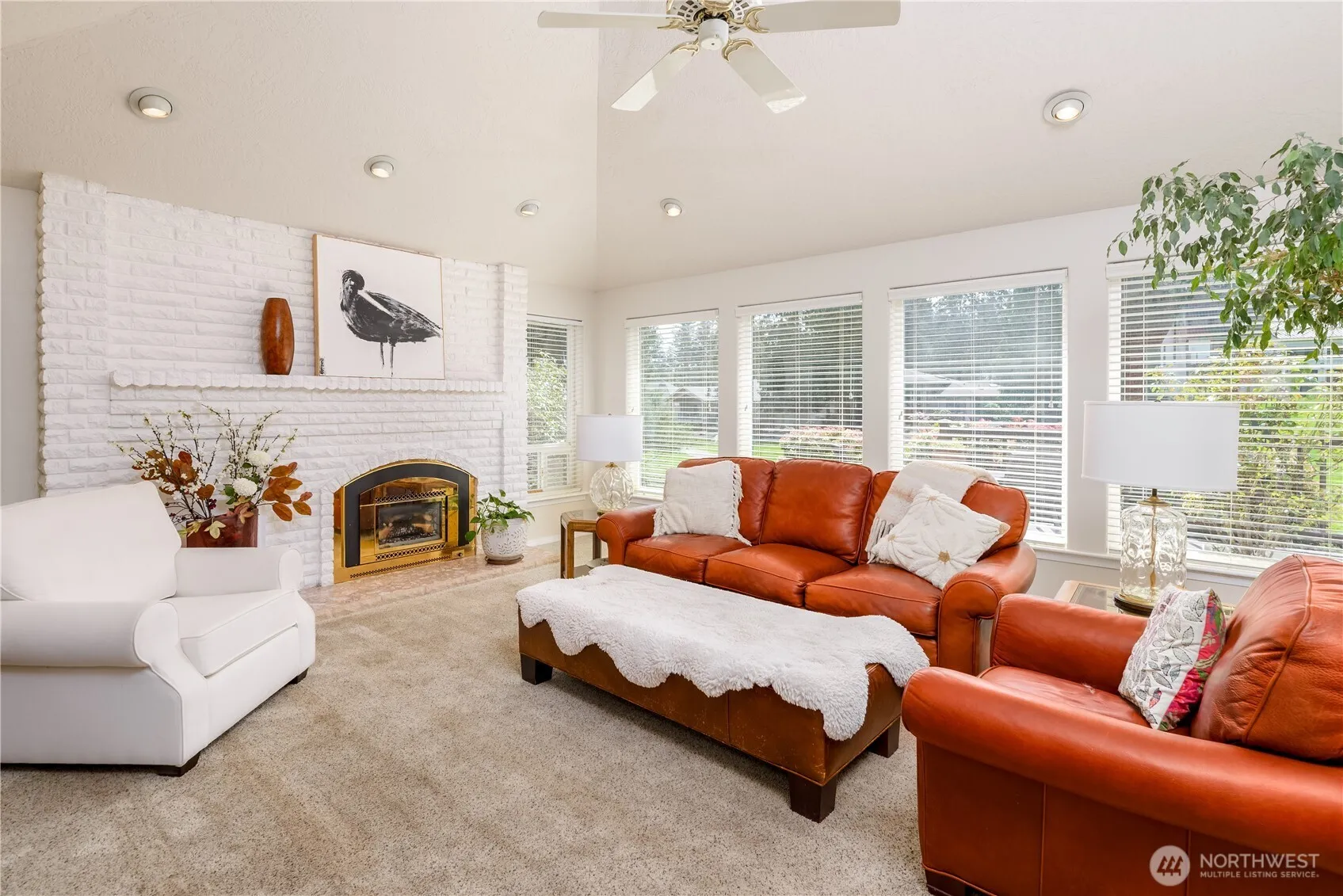 Gorgeous home set on one of Sequim’s best streets & right on Sunland’s 18th fairway. Thoughtfully positioned mature trees create a buffer while also preserving beautiful golf course views from the spacious deck. Vaulted ceilings, abundant natural light from multiple skylights, & a comfortable living room centered around a white brick fireplace and golf course views. French doors connect the formal dining area to the backyard, creating easy indoor-outdoor flow. A granite dry bar adds a nice touch for entertaining. The chef’s kitchen offers granite counters, LVP flooring, pull-out cabinets, pantry storage, & updated appliances. A built-in office/desk area adds a convenient workspace. Generously-sized primary suite with large walk-in closet, built-ins, & skylights. The ensuite bath includes a large tiled shower with multiple shower heads, a jetted soaking tub, dual sinks, tile counters, & instant hot water, plus a private WC room. A second bedroom & 3/4 bath provide comfort for guests. Additional features include a dedicated laundry room, updated roof, newer heat pump, & a generator that can convey. A greenhouse, beautifully maintained landscaping, pathways, & vibrant plantings enhance the outdoor experience. Extra gravel parking adds convenience, while a leased propane tank plus an additional owned tank offer flexibility. Hot tub negotiable. A rare combination of privacy, golf course living, & well-maintained upgrades—this home offers relaxed Sequim living at its best.